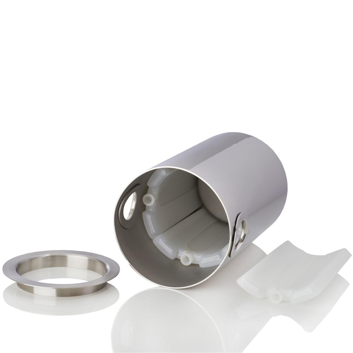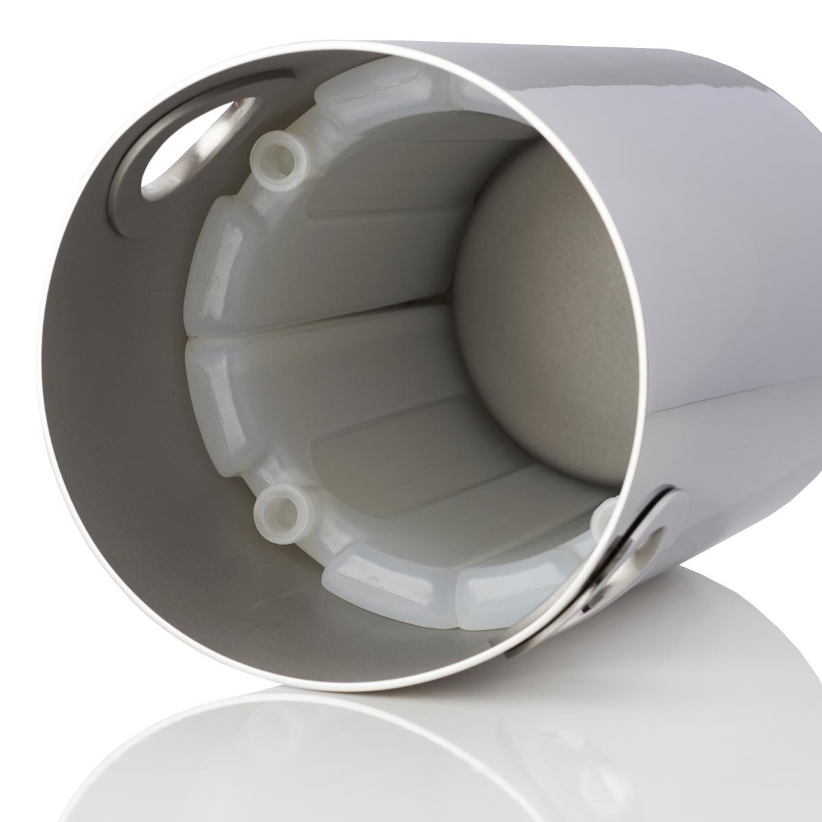 The "Oh" wine cooler from Christofle is made of shiny stainless steel and has a very tasteful design. Special highlight: The wine cooler has a removable plastic cooling ring. This is concealed by a stainless steel ring. The modern stainless steel collection "Oh" from Christofle (and thus also this attractive wine cooler) complement many different interior styles, and this cooler is a perfect accessory for events such as a garden party.