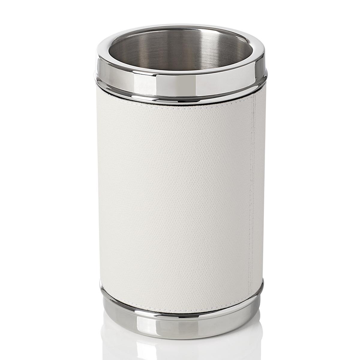With its "Ocean" wine cooler, the Italian manufacturer GioBagnara presents handicraft at its best. The cylindrical "Ocean" wine cooler is made of chrome-plated stainless steel, which is encased in high-quality calfskin. Even the base of the "Ocean" wine cooler is made of leather. The wine can stay cooler for longer thanks to the insulation. Since no ice cubes are necessary to keep it cool, no water drips when you serve the wine.