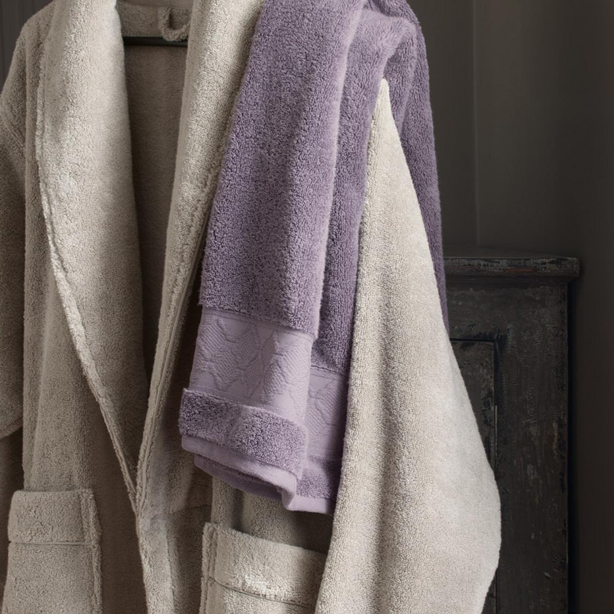 Due to the high-quality cotton quality, the "Caresse" bathrobe remains cuddly even after frequent washing. Matching the "Caresse" bathrobe is the terry towel line "Caresse" by Le Jacquard Francais.