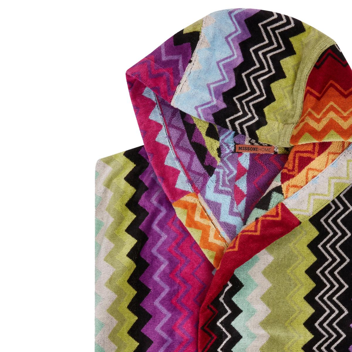 The "Giacomo" bathrobe displays the famously colourful zigzag pattern of the Italian luxury brand Missoni Home. The hooded "Giacomo" bathrobes multi-coloured (colour 59) are made of 100% cotton.