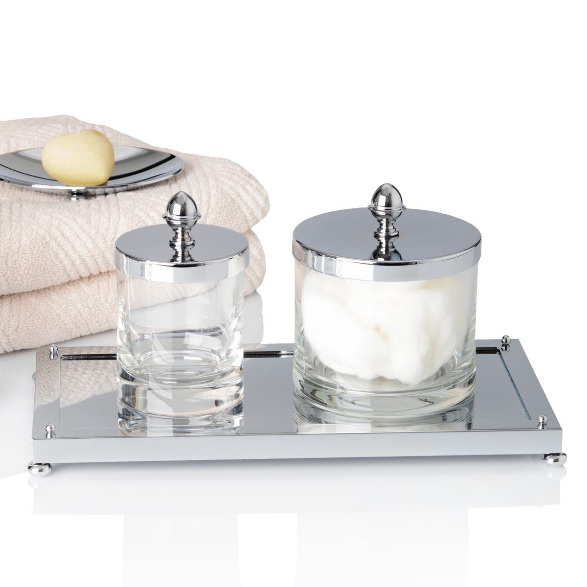 The "Cristallin" jars from Cristal et Bronze are not only a wonderful bathroom accessory, they are also very practical. You can use them for your cotton pads, cotton buds or small cosmetic utensils. The decorative containers are made of crystall glass and are easy to clean. The lids have a fine chrome-plated lid and are thus very durable.