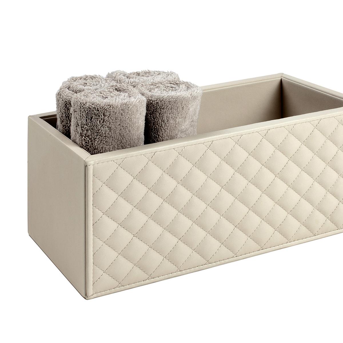 - Leather "Vanity" box: this large leather box is most suitable for the storage of bath utensils which need to be readily to hand. The longer, outer walls of the leather box are padded and quilted.