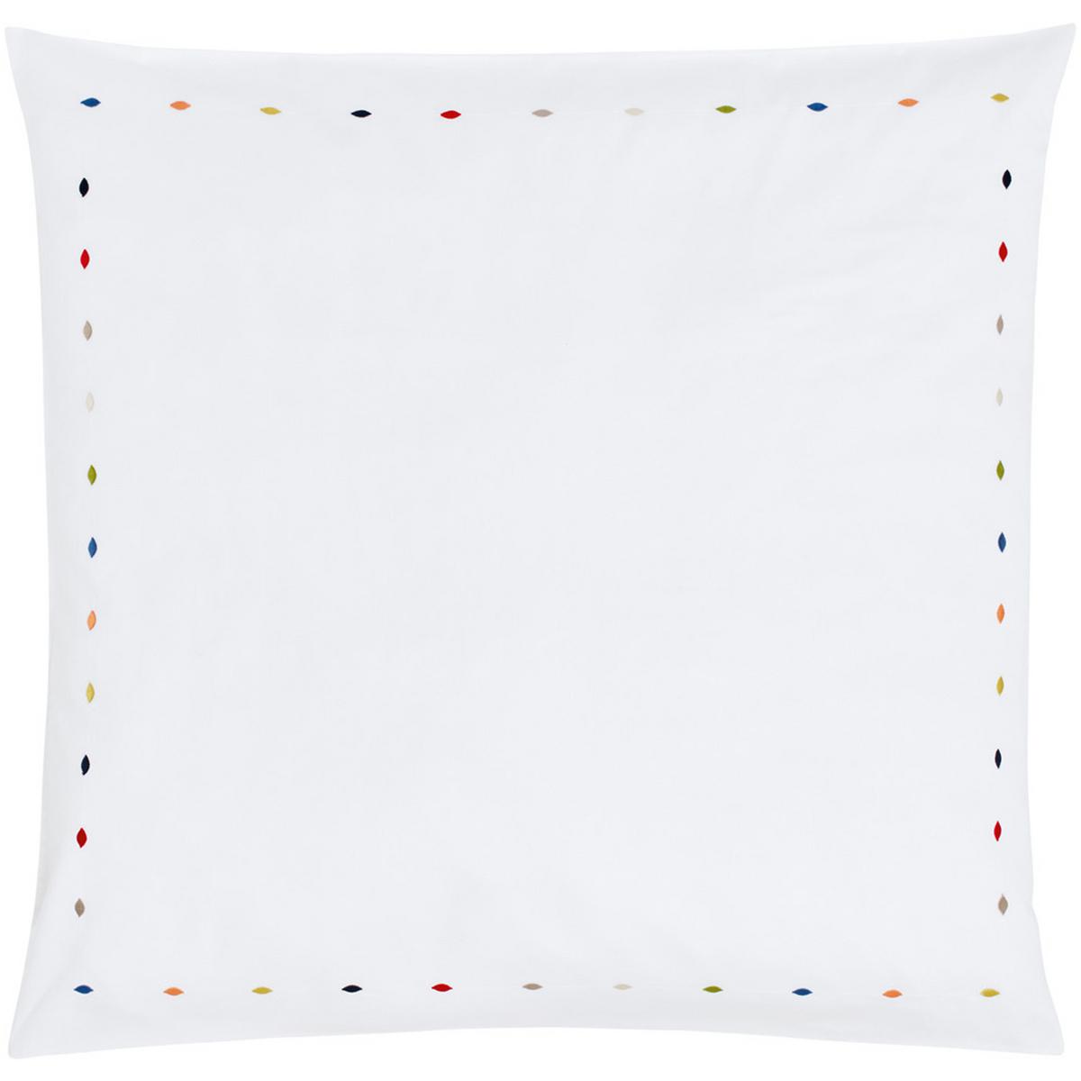 The playful "Collier" bed linen by Christian Fischbacher is produced using sophisticated glossy rayon yarn embroidered on the finest cotton satin in swiss+cotton quality. The pillow is decorated by a border reminiscent of a colourful string of pearls. The duvet sports the almond-shaped elements all over. The many colours of the hand-sewn embroidery make it extremely versatile.
