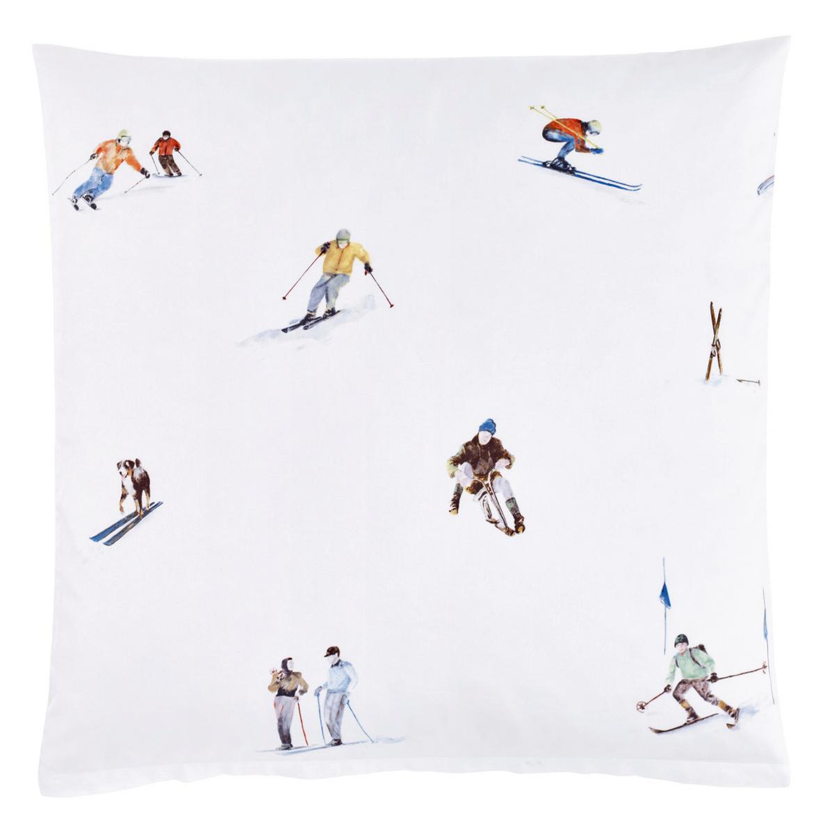With its ski theme, the "Engadina" bed linen by Christian Fischbacher portrays a typically Swiss image. The bed linen features winter sports enthusiasts from the 1920s and 30s, alongside skiers of today, some whizzing down the slopes whilst others stand at the side and chat. The detailed drawing of the design, which was originally created using watercolour and photography, beckons the viewer onto the pistes of St. Moritz, the birthplace of the alpine sport at the heart of the Engadin valley. The brilliant colours are achieved through the intricate 12-stencil print. "Engadina" is printed on Christian Fischbacher’s fine cotton sateen, a soft and feather-light cotton that weighs just 100 grams per square metre.