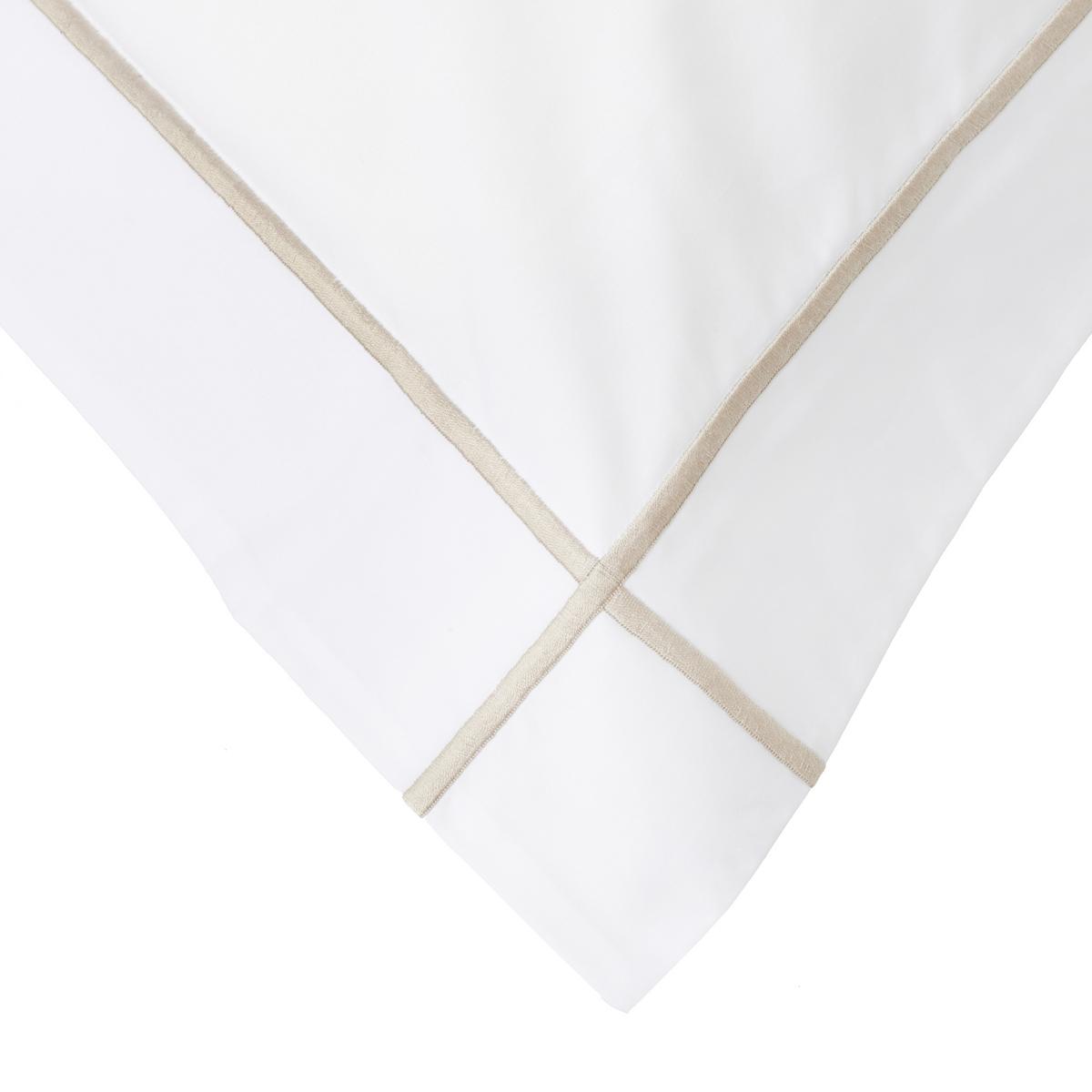 "Athena" blends old fashioned elegance with new fashioned style. Yves Delorme’s flanged pillow cases are a real classic. The sateen horizontal and vertical stitch frames the crisp white body to create a modern look. The hand-embroidered, coloured border is available in many restrained colour combinations - in this version it is colour pierre on white.