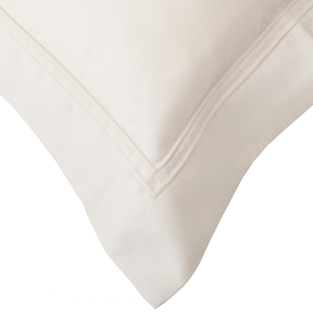 Yves Delorme’s "Triomphe" bed linen is an elegant, plain-coloured line. The Yves Delorme "Triomphe" bed linen in mother-of-pearl has an attractive double saddle stitch and wide flange that adorn both the pillow cases and the sheets and duvet covers.