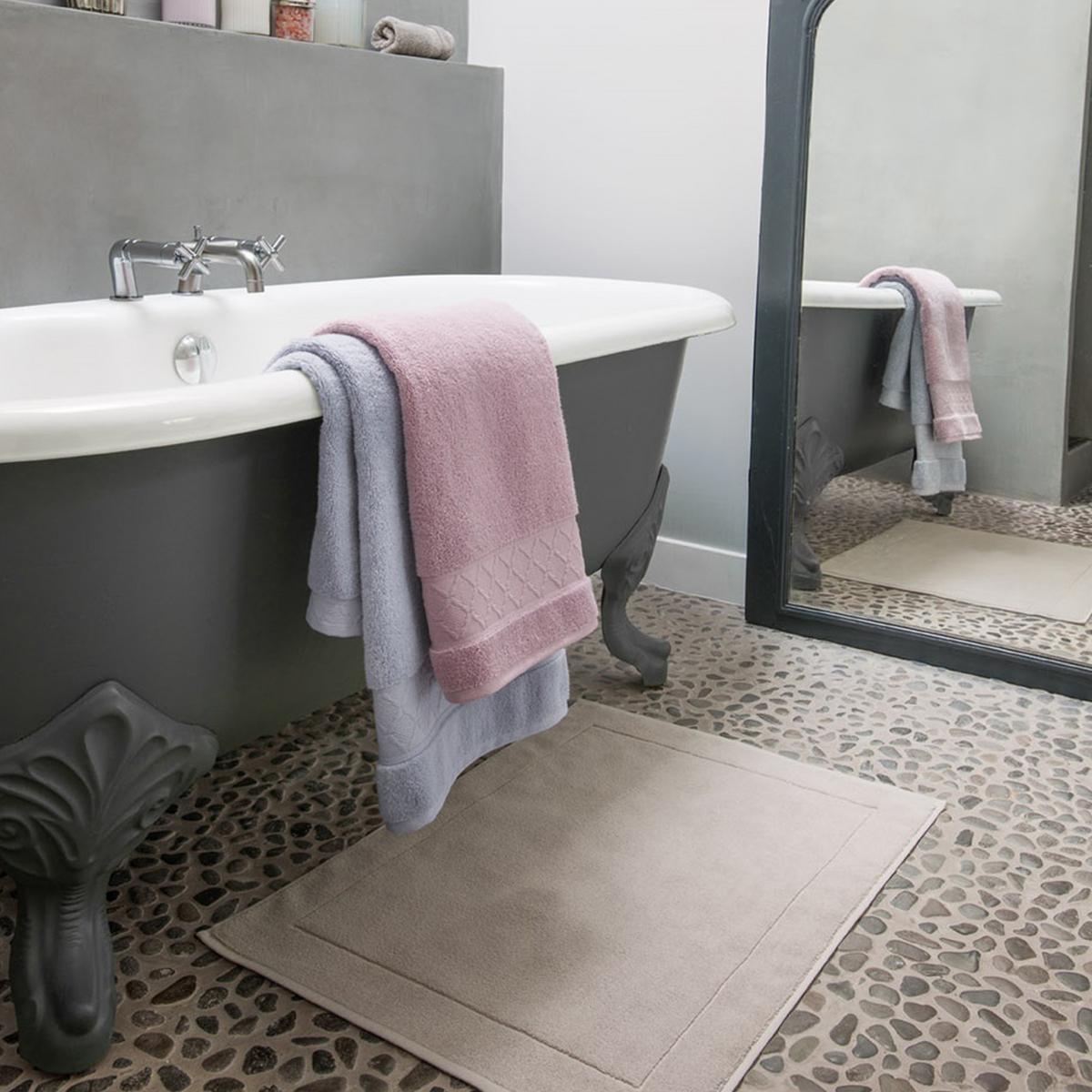 Enhance your bathroom with the "Caresse" terry towels by Le Jacquard Francais. The incredibly soft and gentle series "Caresse" by Le Jacquard Francais is inspired by the feminine, powdery pastel colours of cosmetics. The towels have a beautiful border in the shape of diamonds. Thanks to the high quality, the towels are very absorbent, hard-wearing and will retain their shape however much you use them.