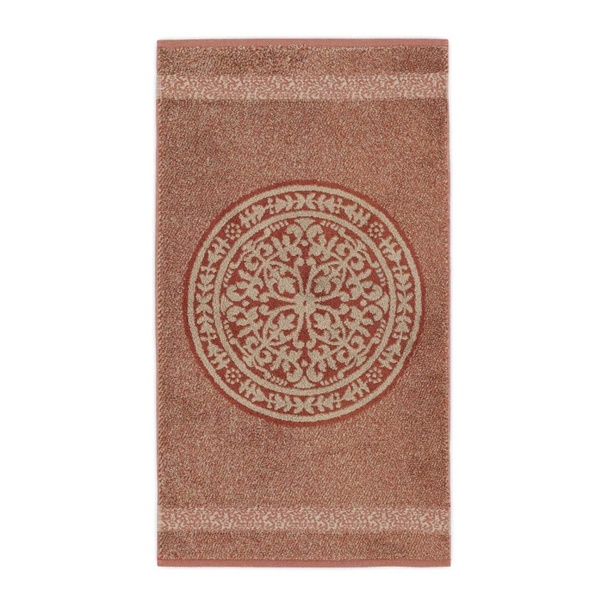 In the "Rosetta" terry towelling, an elaborate round ornament adorns the centre of each towel. A rosette with woven-in light ornaments stands out against a coloured base with diagonal lines. "Rosetta" from Leitner conjures up a romantic element of playfulness in every bathroom.