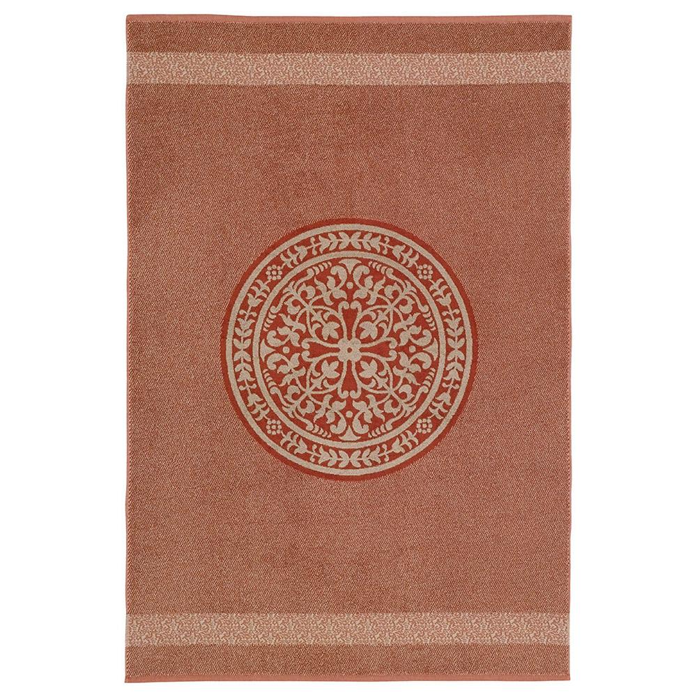 In the "Rosetta" terry towelling, an elaborate round ornament adorns the centre of each towel. A rosette with woven-in light ornaments stands out against a coloured base with diagonal lines. "Rosetta" from Leitner conjures up a romantic element of playfulness in every bathroom.
