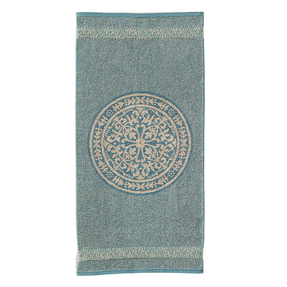 In the "Rosetta" terry towelling, an elaborate round ornament adorns the centre of each towel. A rosette with woven-in light ornaments stands out against a coloured base with diagonal lines. "Rosetta" from Leitner conjures up a romantic element of playfulness in every bathroom.