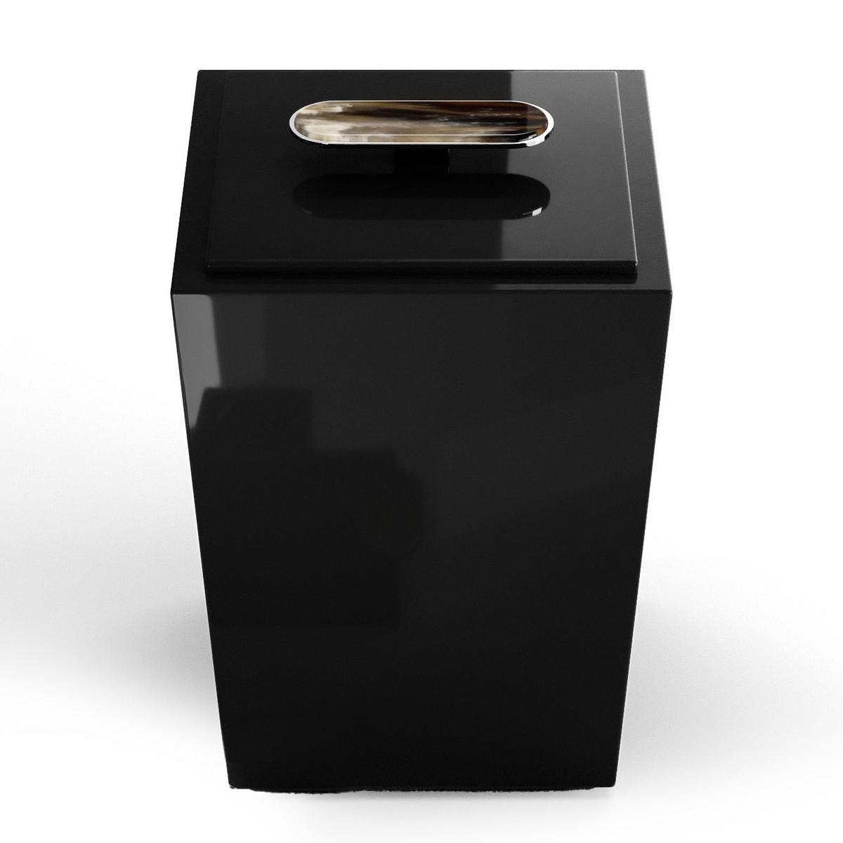 Perfect surfaces with a natural touch. The "Bicco" waste paper basket in black from the Sibilla collection by Arcahorn enriches living spaces, offices, and yachts with prestigious elegance and sophistication. Manufactured by hand with great attention to detail, a chrome-plated handle with horn insert completes the modern aesthetic of the wooden waste paper basket. The interplay between the glossy wood and metal surfaces and the organic patterns and colours of the horn create a distinguished composition of timeless beauty.