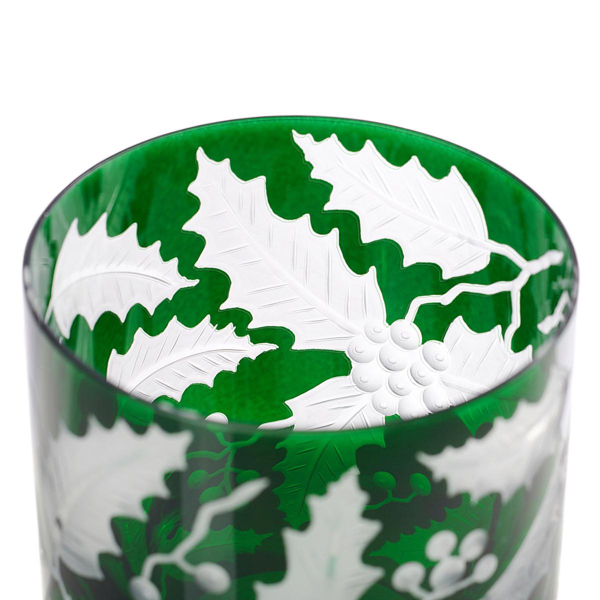 Green light for the dark season. The "Holly" tea light holder in dark green by Artel spreads a cosy holiday atmosphere with a detailed holly engraving. Engraved by hand into lead-free Bohemian crystal glass, the traditional motif transforms the handy tealight holder into a brilliant Christmas ornament in timeless style.