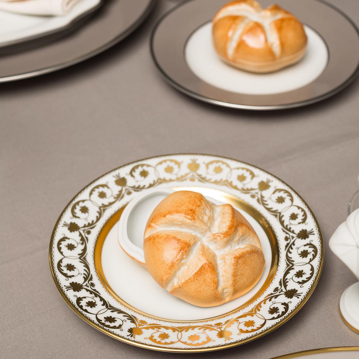The idea originates from Austrian Emperor Franz Joseph I, who had the imperial table decorated with porcelain pastries on his birthday. Augarten Wien is reviving this tradition and transforming the crispy bun into a delightful dish for butter and jam for breakfast or mustard and spreads for a hearty snack. Discover the excellence of Austrian porcelain by Augarten Wien.