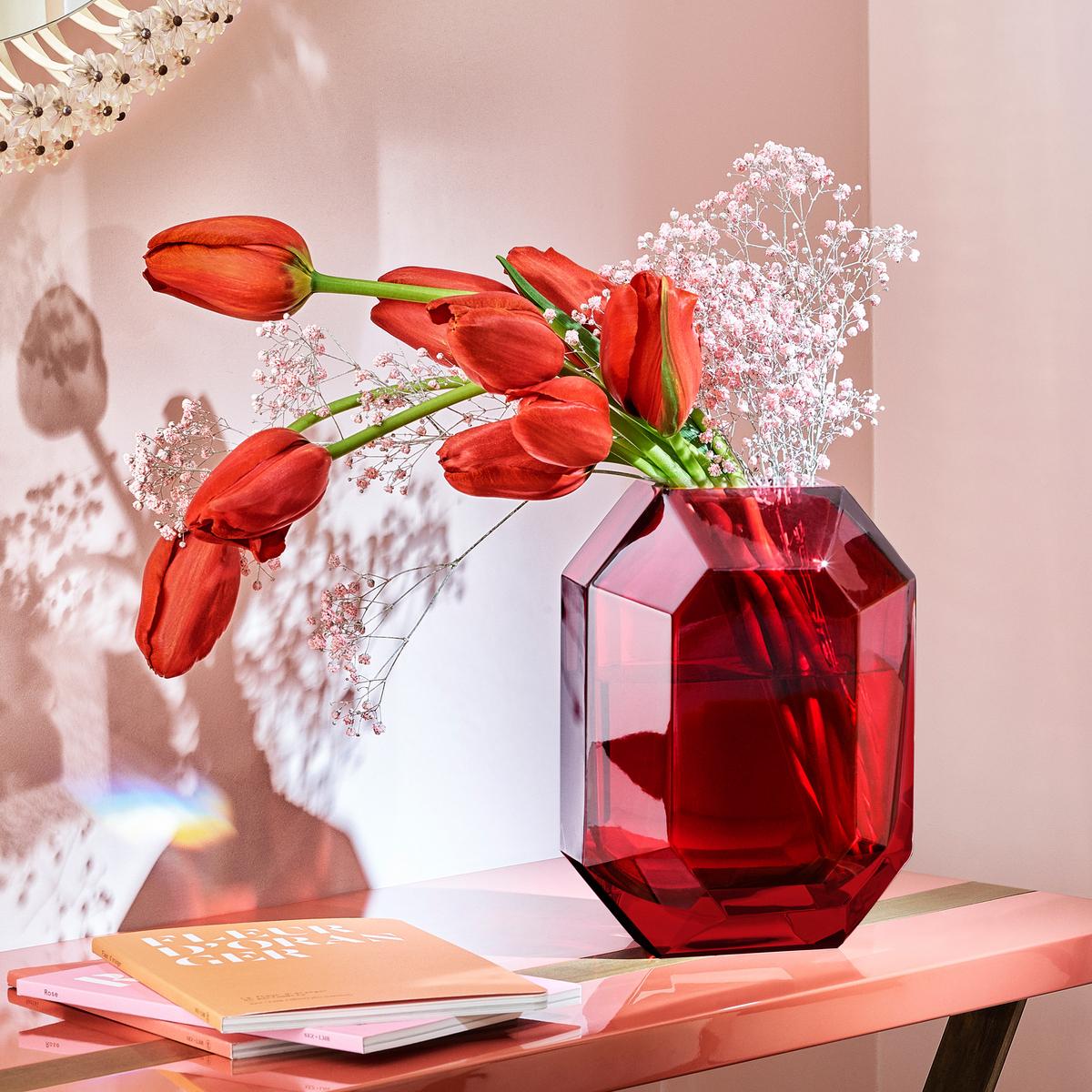 The hallmark of all Baccarat chandeliers, the octagonal chandelier pendant, is transformed here into a red crystal vase. Thanks to its shape, the red "Octogone" vase from Baccarat sparkles like a gigantic gemstone. A true piece of jewellery that will embellish any ambience with its brilliance and make the finest bouquets shine.