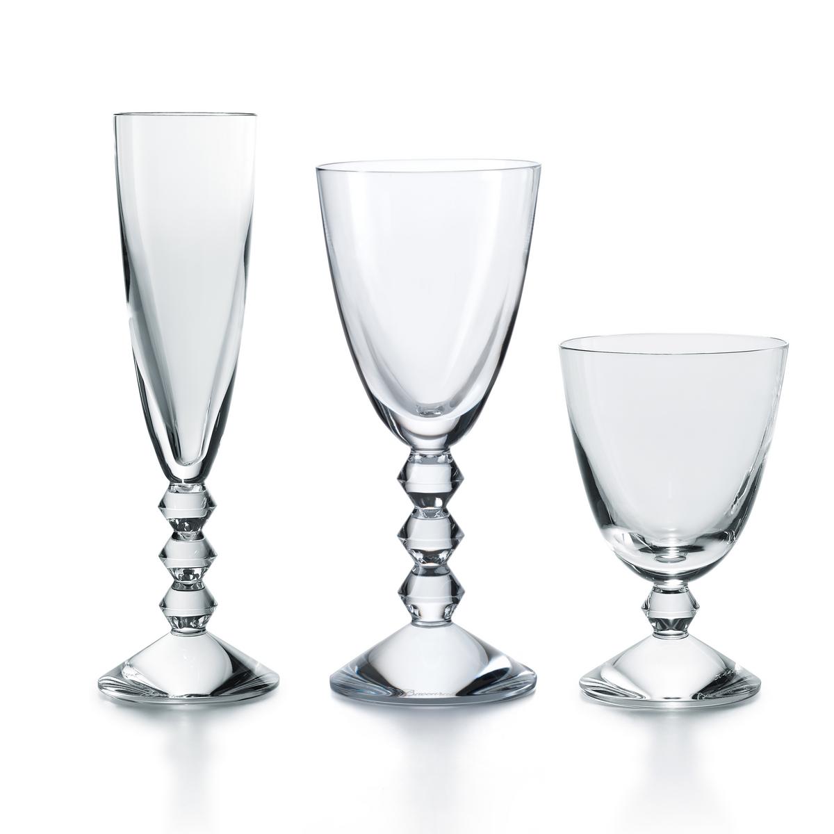 The bestselling "Vega" glassware collection was created by the design duo Savinel & Rozé for Baccarat. The collection includes small and large drinking glasses, champagne flutes and martini glasses.