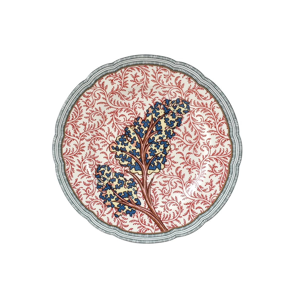 The two emblematic fabrics "Grand Corail" and "La Ménagerie" form the basis for the "Braquenié" dinner service. The opulent ensemble of arabesques, floral motifs and exotic animals is reminiscent of so-called palampores, priceless hand-painted bedspreads from India. The majestic colour palette of red, blue and grey evokes the fascinating style of the Second Empire period; a style that still defines the palaces and luxury hotels of Paris and the world. Whether classicist or maximalist, create extraordinary tablescapes full of magic and whimsy with the "Braquenié" service by Bernardaud.
