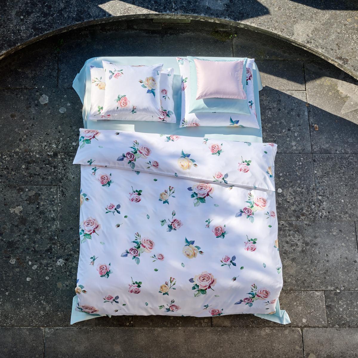 You will feel as if you are sleeping surrounded by roses in the romantic "Antoinette" bed linen by Christian Fischbacher. The flowers were picked in Swiss gardens before being eternalised in drawings in the studio of Christian Fischbacher in Switzerland. With a complex 12-stencil print on the classic white satin bed linen the subtlest nuances of the classic flower are reflected.