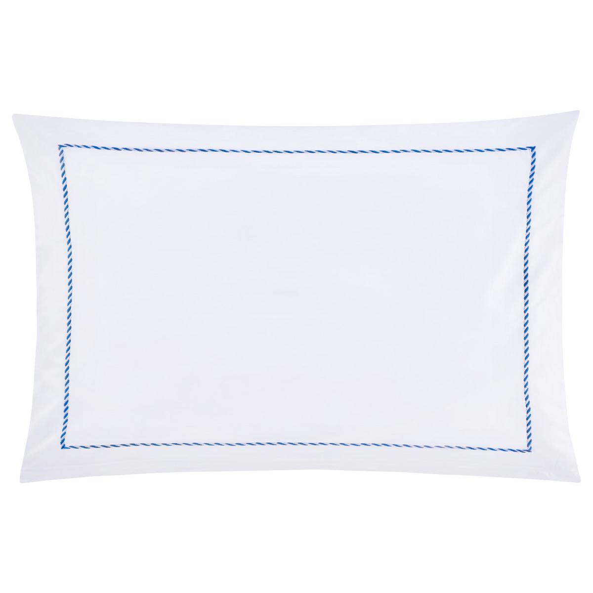 The "Corda" bed linen by Christian Fischbacher combines the finest cotton sateen with a subtle decorative touch. A delicately embroidered blue-and-white cord frames the pillows and duvet covers, adding an accent that is both elegant and playful. Flowing like a ribbon, the embroidery lies gracefully on the smooth, gently shimmering fabric, lending classic white bed linen a distinctive refinement.