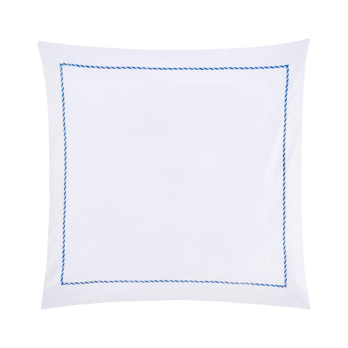 The "Corda" bed linen by Christian Fischbacher combines the finest cotton sateen with a subtle decorative touch. A delicately embroidered blue-and-white cord frames the pillows and duvet covers, adding an accent that is both elegant and playful. Flowing like a ribbon, the embroidery lies gracefully on the smooth, gently shimmering fabric, lending classic white bed linen a distinctive refinement.