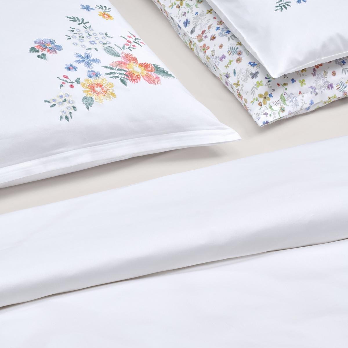 The "Diana" bed linen by Christian Fischbacher enchants with great attention to detail. Blossoms and leaves are embroidered by hand onto the cotton sateen in an elaborate process and come together to form a sophisticated bouquet. The "Diana" bed linen goes wonderfully with "Giardina".