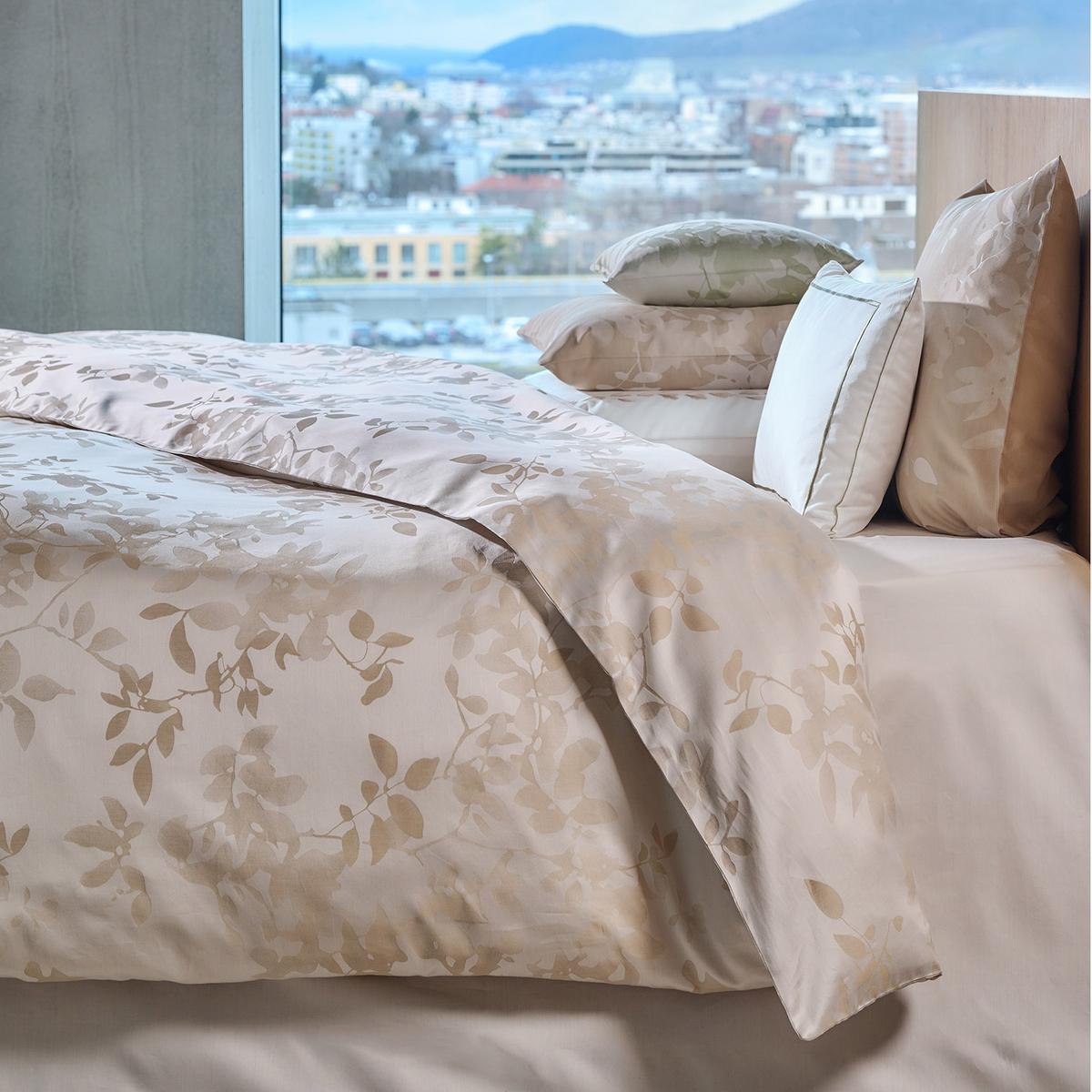 What could be more beautiful than the soft autumn light shimmering through the leaves? A dreamy view of the canopy of leaves and the fascinating interplay of light and shadow. The "Leaves" bed linen from Christian Fischbacher in jacquard cotton lends your bedroom an incomparable elegance. A very high percentage of cotton sateen in the surface of the material gives the bed linen a very smooth and elegant feel.