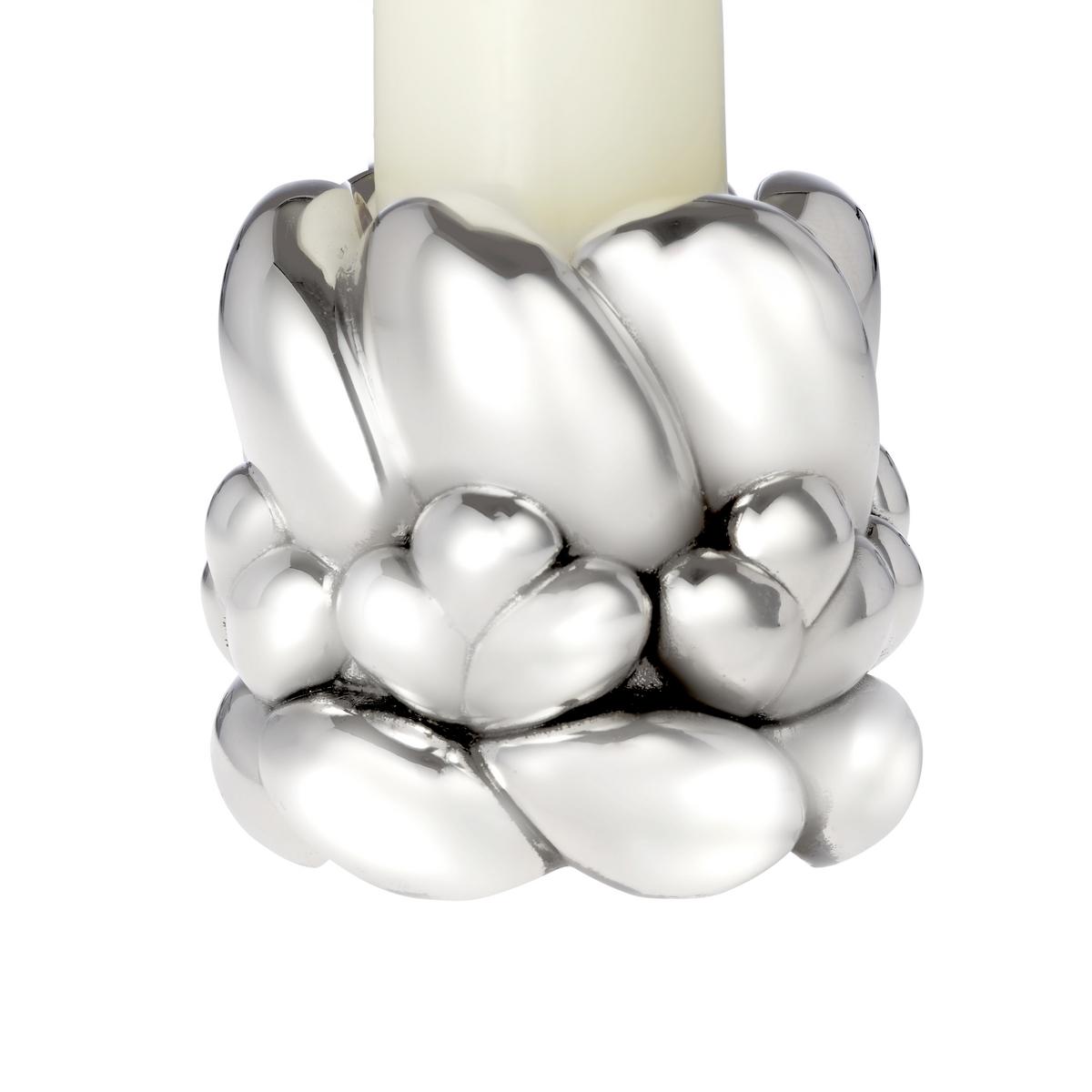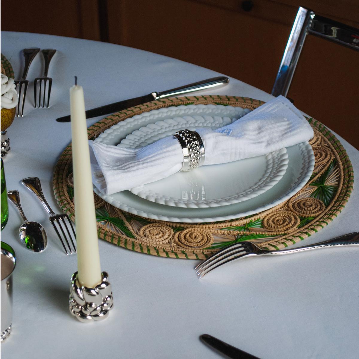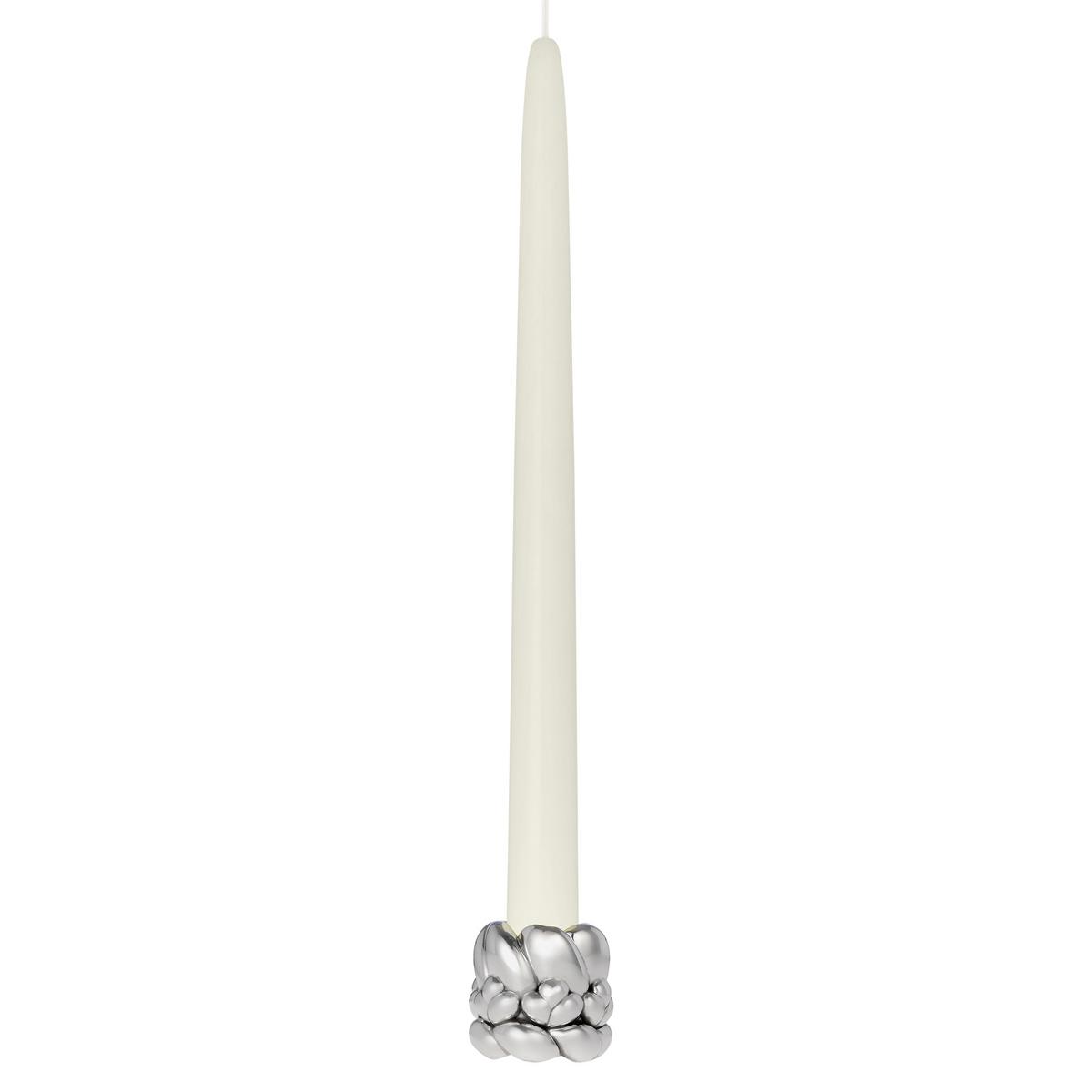 Generous, sensual, organic. The silverplated "Babylone" candle holder by Christofle brings the glamour and lifestyle of the best addresses in Paris into your interiors. Made in the elaborate lost-wax process, the décor of the compact candle holder amazes with deep reliefs and the organic curves of a freshly baked brioche braid. A hand-applied patina accentuates the details and volume of the décor. The box of the beautiful table jewel includes one fitting candle.