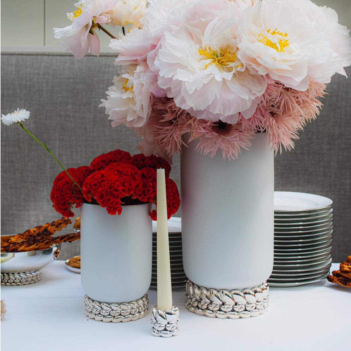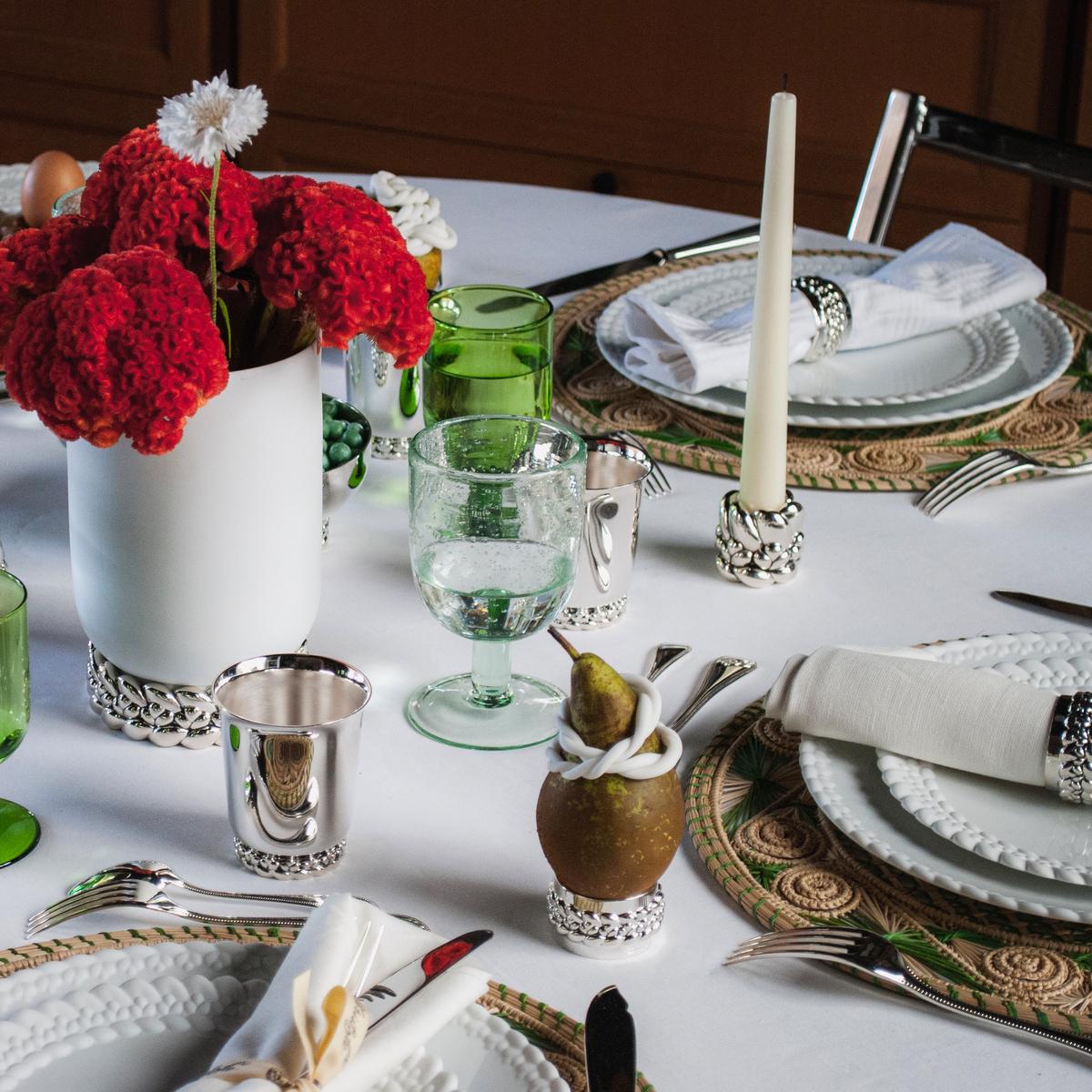 The "Babylone" collection was designed for Christofle by Miss Aurélie Bidermann. With her refined and imaginative jewellery collections, the independent designer has been a reference in the French jewellery world since 2003. Together with the silversmith Christofle, she translates the lifestyle of the Rue de Babylone, address of artists and thinkers in the famous 7th arrondissement of Paris, into modern living and table culture. The leitmotif of the collection is her favourite symbol, the braid, combined with classicistic and minimalist elements. Discover a reinvented legend with sensational glamour for a new level of entertaining.