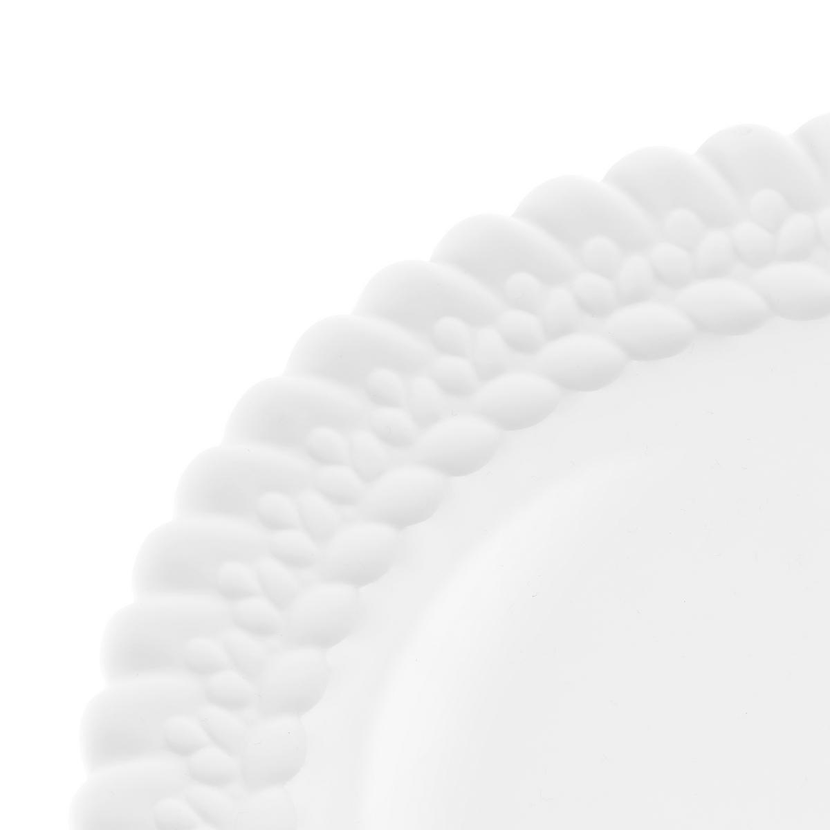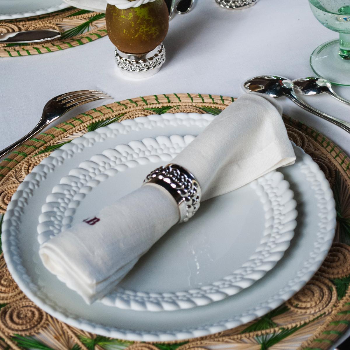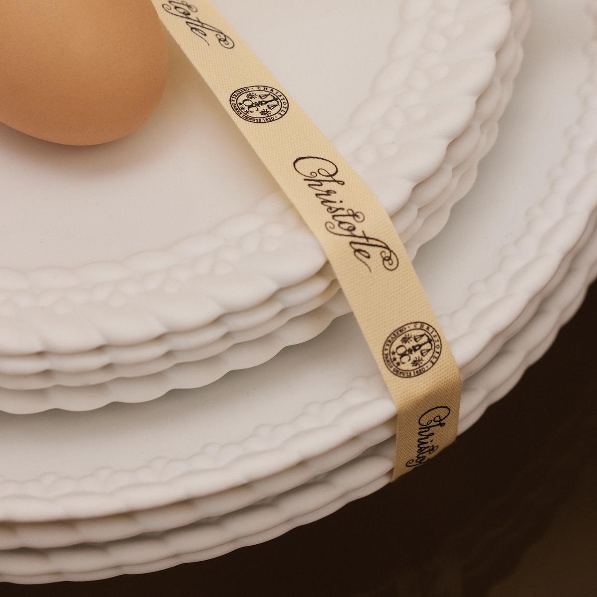 Generous, sensual, organic. The "Babylone" plates by Christofle bring the glamour and lifestyle of Paris into your interiors. The glazed centres of the white porcelain plates are framed by a braid décor of matt bisque porcelain. Like a freshly baked brioche braid from the boulangerie, the soft curves of the elaborate décor stimulate the appetite and imagination.