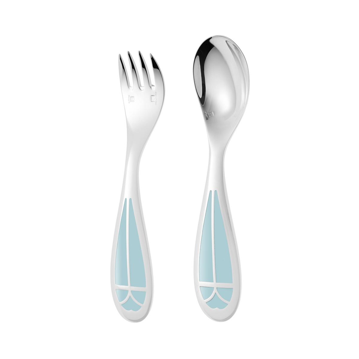 "Ice blue Talisman" child's cutlery set (2 pieces) by Christofle