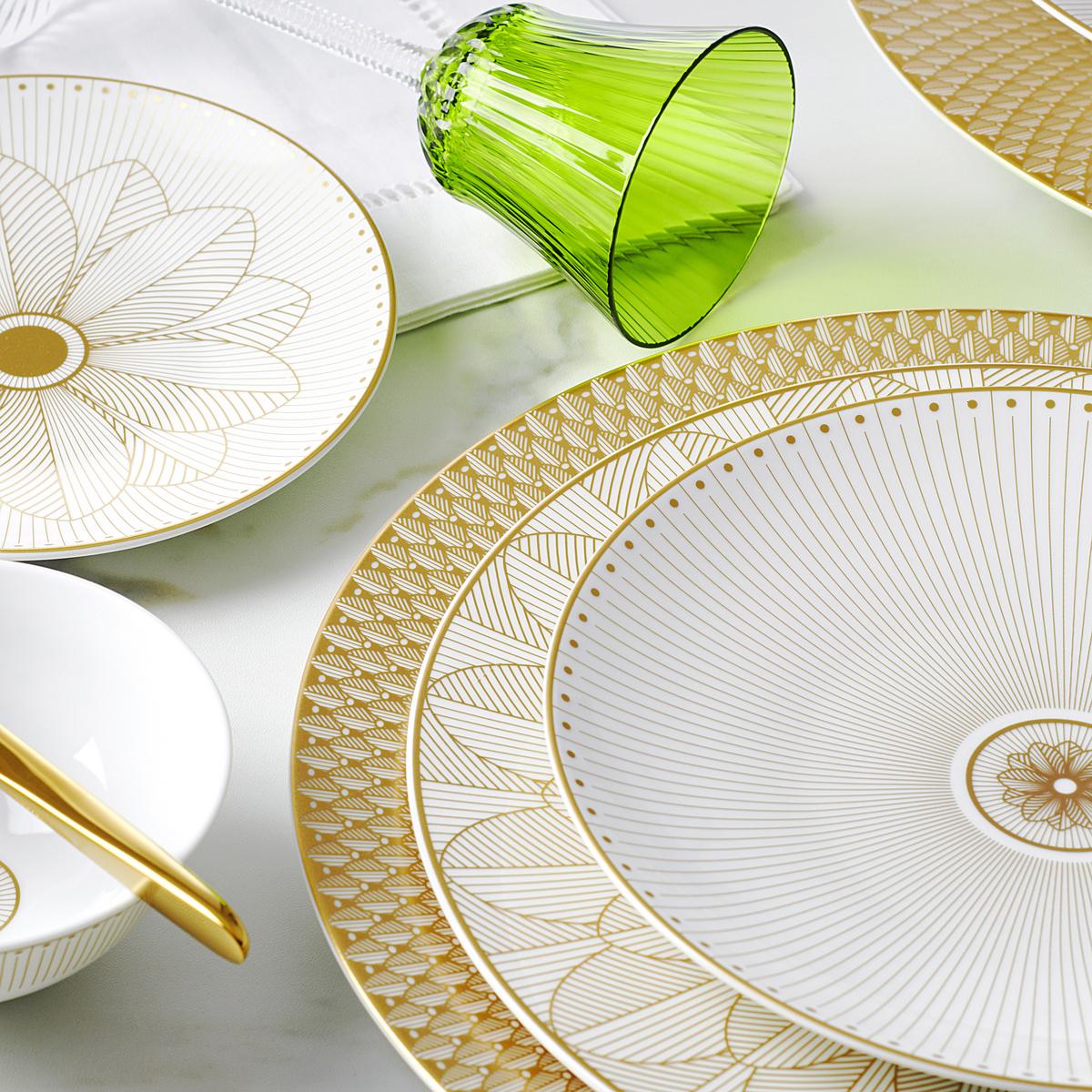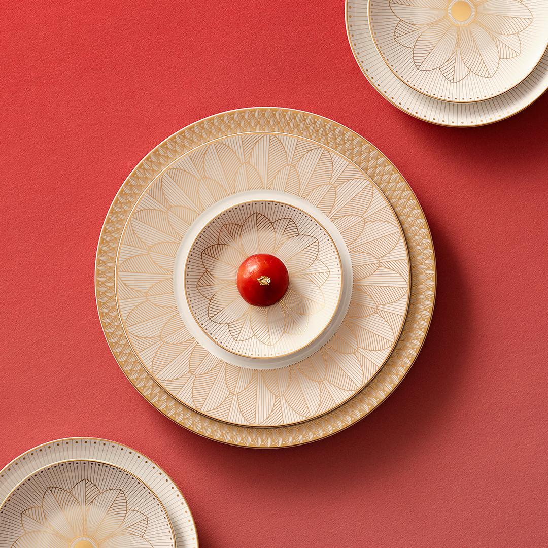 With its synthesis of history and modernity, the "Malmaison Impériale Gold" collection opens up completely new possibilities for combining classic and contemporary porcelain and cutlery ranges from Christofle. Link vintage collections such as "Malmaison" or "Albi" with current patterns such as "Infini" and "Vertigo" to create refined tablescapes filled with endless associations. The extensive selection of plates, cups, platters and bowls is suitable for classic French as well as international and creative cuisine.