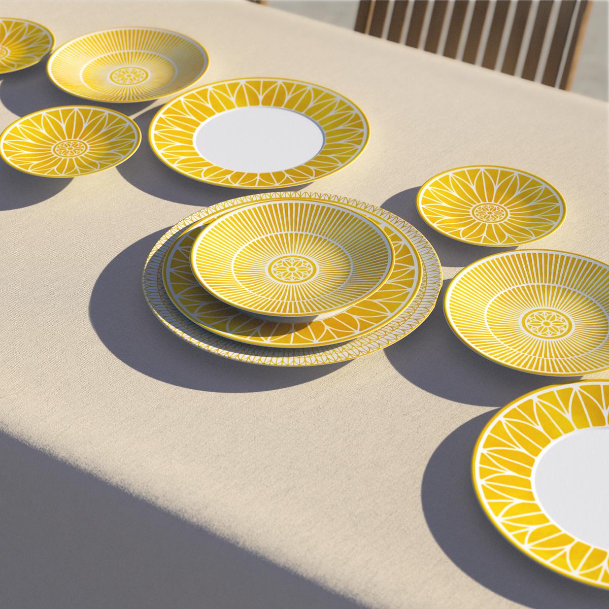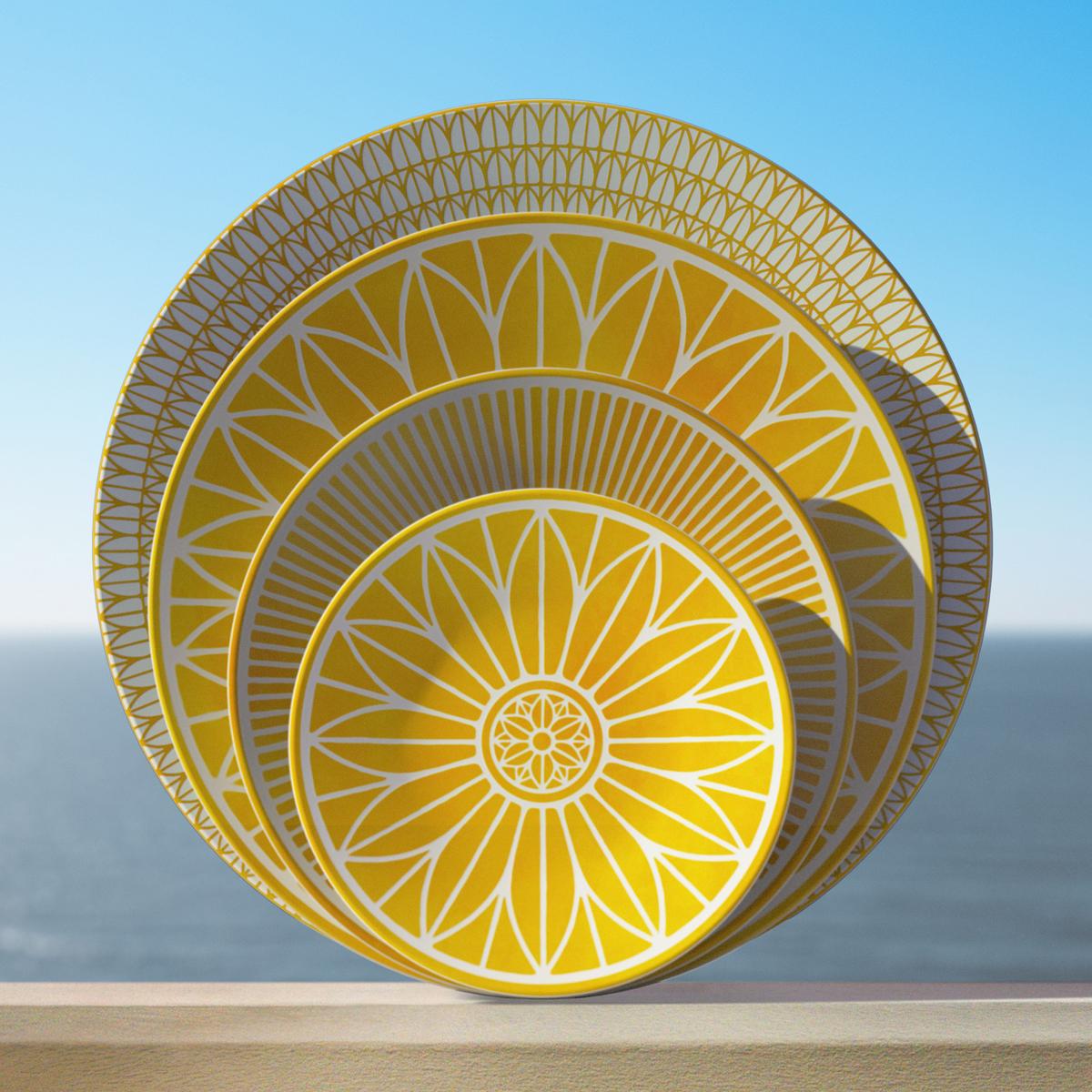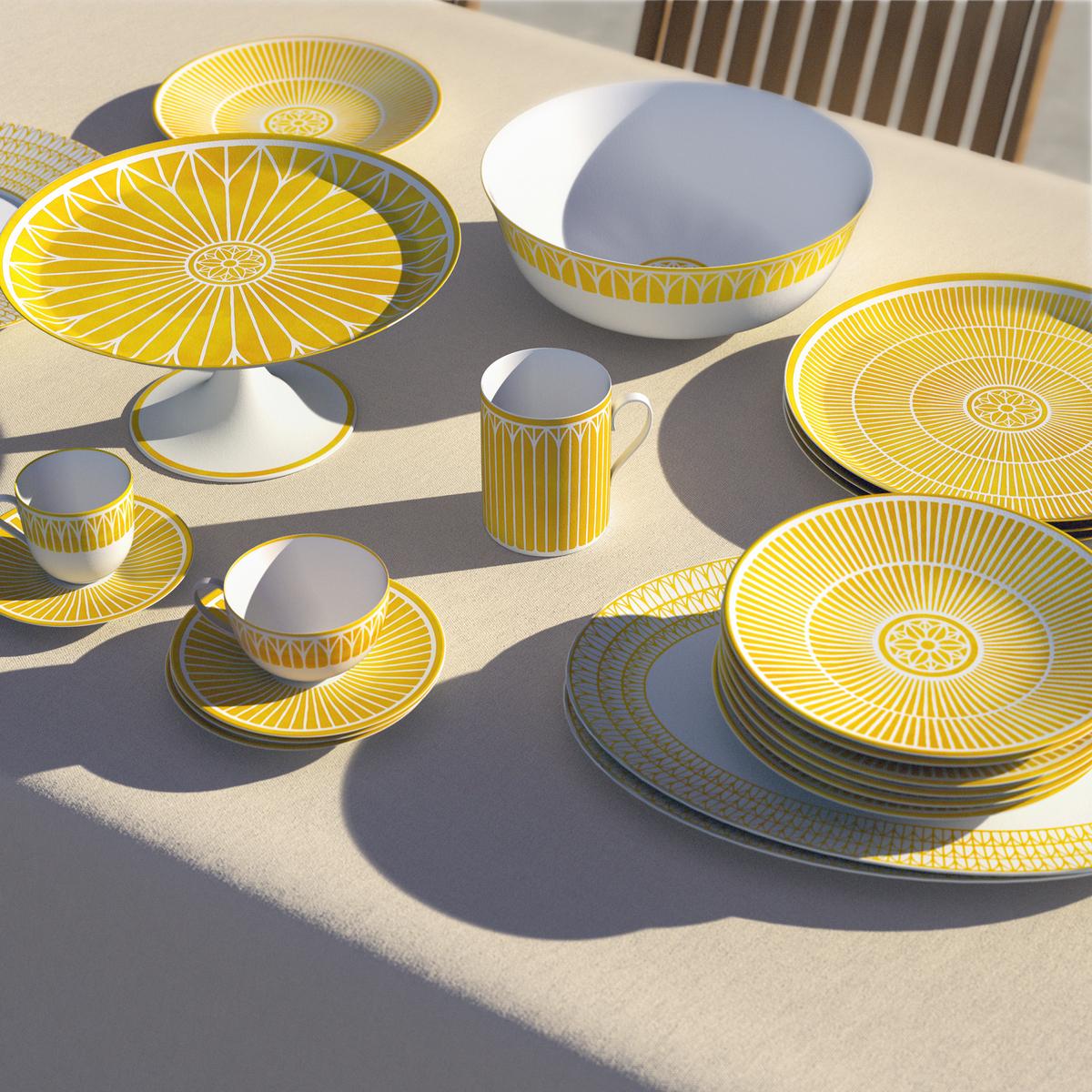 The signature "Malmaison" motifs – delicate, symmetrical patterns of palmettes and stylized leaves – remain instantly recognizable. In "Malmaison Riviera", however, they appear for the first time in a warm, natural shade of yellow, bringing a vibrant, sunlit energy to the refined Limoges porcelain.