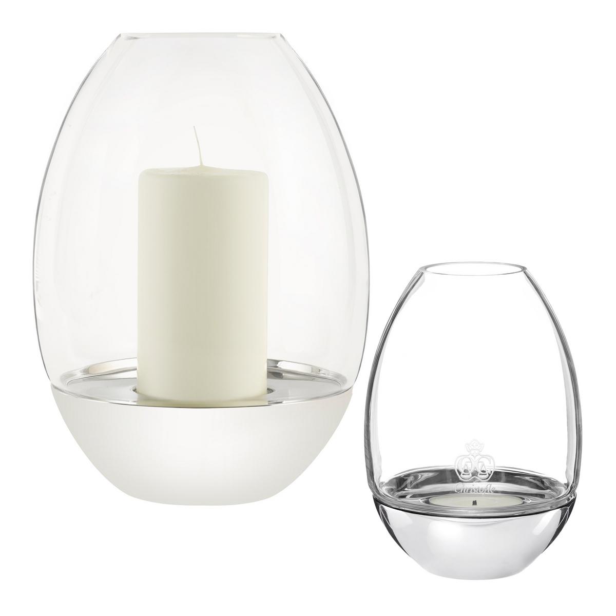 Inspired by the "Mood" cutlery set: The "Mood" hurricane lamp and tea light holder complete the Christofle collection with beautiful accessories. The model for the elegant and elaborate design is the egg-shaped silhouette of the "Mood" cutlery set.