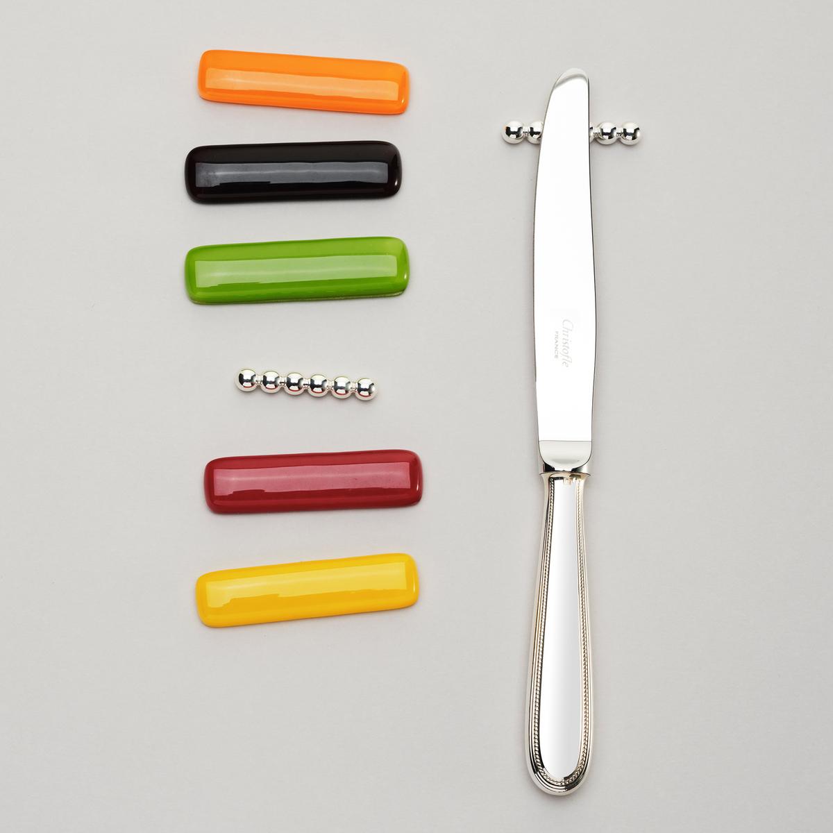 A pearl of French tableware. The "Perles" knife rests are a timelessly elegant table decoration from the traditional silversmiths of Christofle. Silver-plated beads are strung together like pearls on a necklace to form a shimmering bench on which knives and chopsticks rest elegantly. The warm glow of silver adds a warm, feminine grace to this sleek and simple design for both classic and formal table settings.