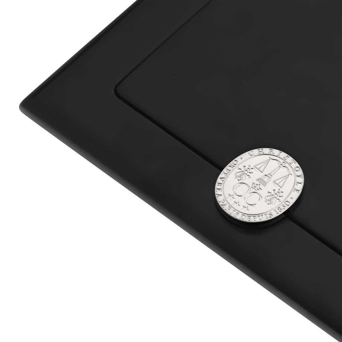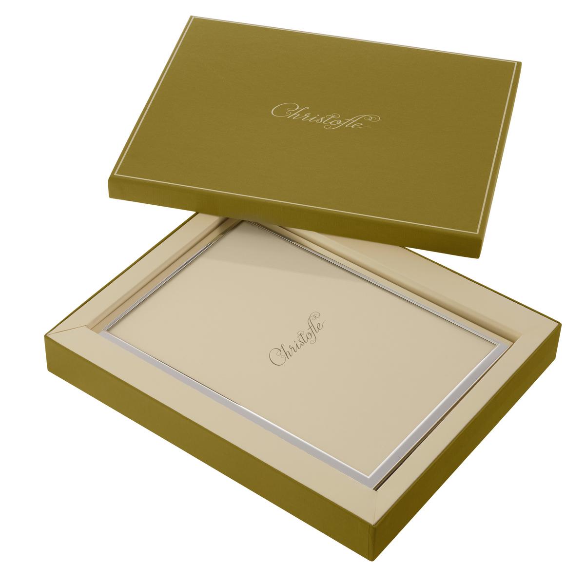 The new edition of Christofle's picture frames has a black lacquered wooden back lined with felt. The picture frames are easy to open and close thanks to a pivoting latch made of lustrous Zamak alloy and embossed with the Christofle coat of arms. Safely packaged in an antioxidant pouch and presented in an exclusive Christofle gift box, these frames make exquisite gifts for special occasions.