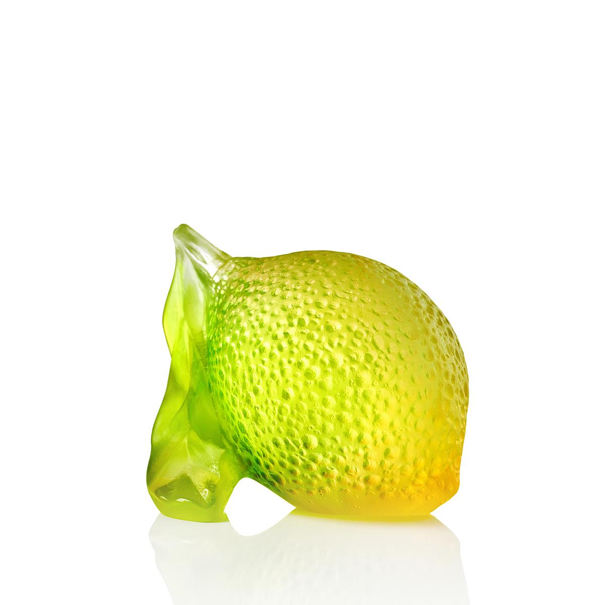 Symbols of purity and joy. The decorative lemons by Daum pay homage to the sun-drenched landscapes of Andalusia, Spain. The collection includes a whole lemon with leaves and a small arrangement of sliced lemons. Crafted from fine Pâte de Cristal, the naturalistic textures of the little ornaments shine in a vivid and vibrant gradient of two shades of yellow and one shade of green. A refreshing gift idea, these cheerful masterpieces will fill any room with Mediterranean zest for life.