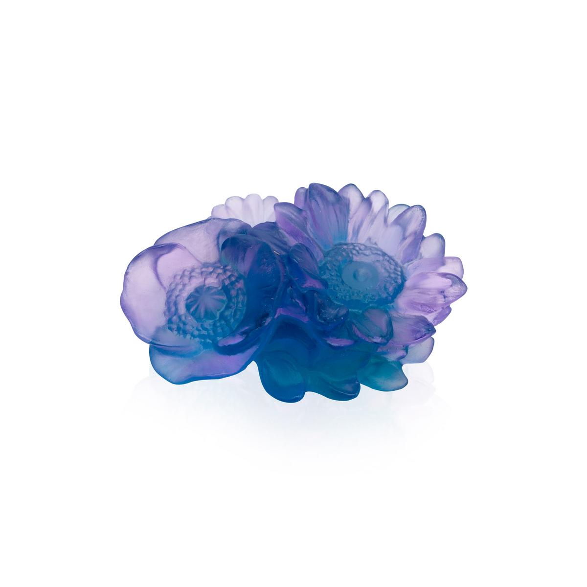 The "Sweet Garden" deco flower by Daum celebrates the beauty of wild and garden flowers that we encounter beyond the beaten path. Made purely by hand from Pâte de Cristal, the small flower arrangement looks as lively as real flowers. A soft colour gradient from deep blue-green to graceful purple tones gives the sculpture a tender, elegant, and aquatic character that will soothe and refresh you.