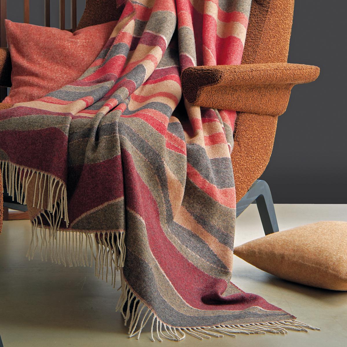 The casual "Canyon" plaid by Eagle Products stands out with its organically arranged stripes in different shades of color. It is inspired by the diverse rock deposits in American canyons. The plaid also has two different "faces": the colour shades can be seen in different nuances on the front and back. The plaid is also very cozy: Its soft wool is pleasant on the skin.
