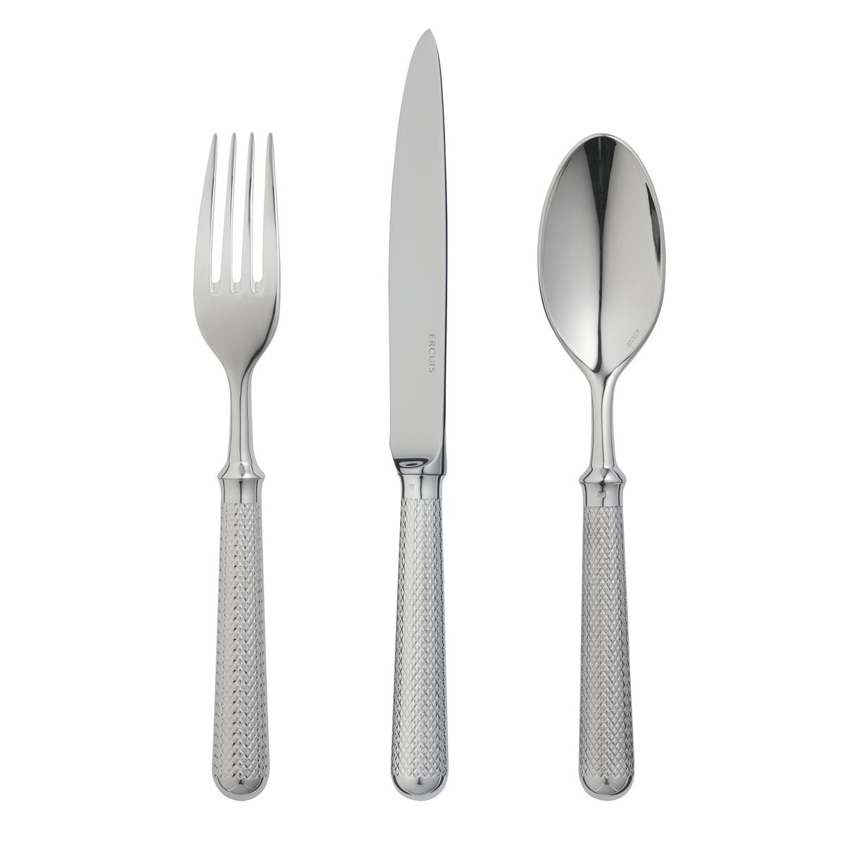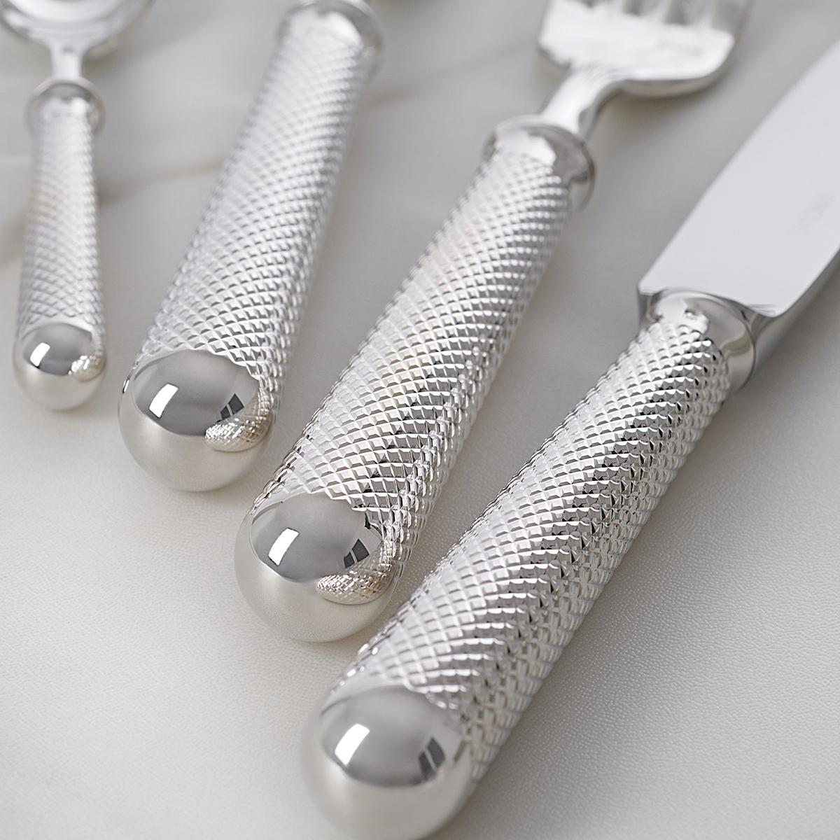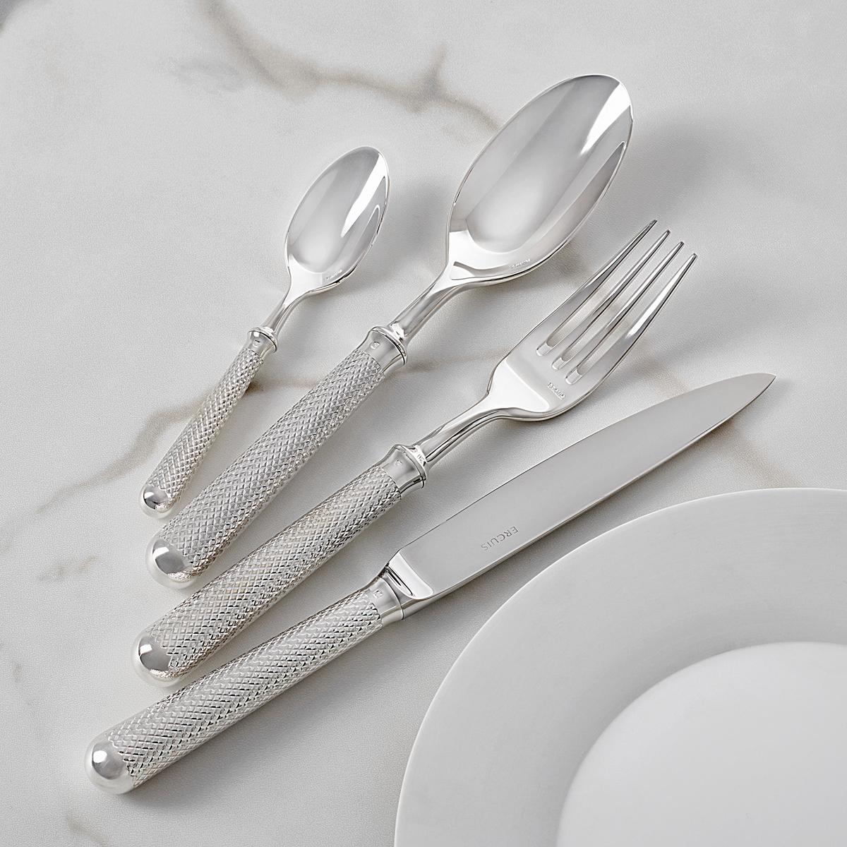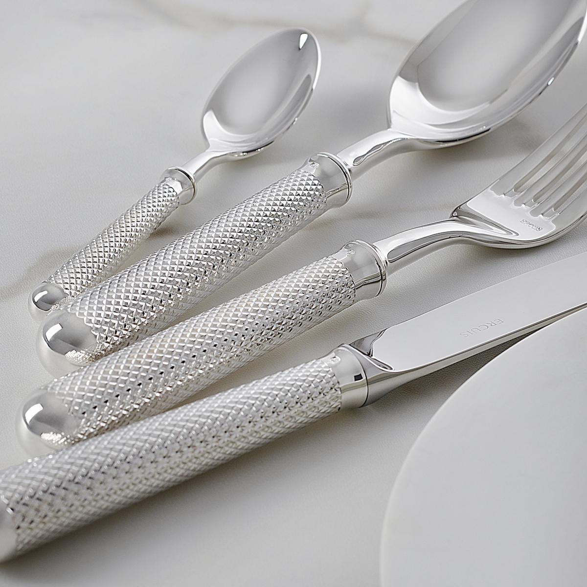 With "Diamant" Ercuis presents a silverplated flatware that embodies the highest level of French craftsmanship combined with contemporary elegance. Part of the "Miroir" collection, the "Diamant" cutlery is the unique result of a synthesis between two exceptional areas of expertise: Ercuis’ master silversmithing and the intricate art of guilloché, carried out by the last French workshop still practicing this demanding technique.