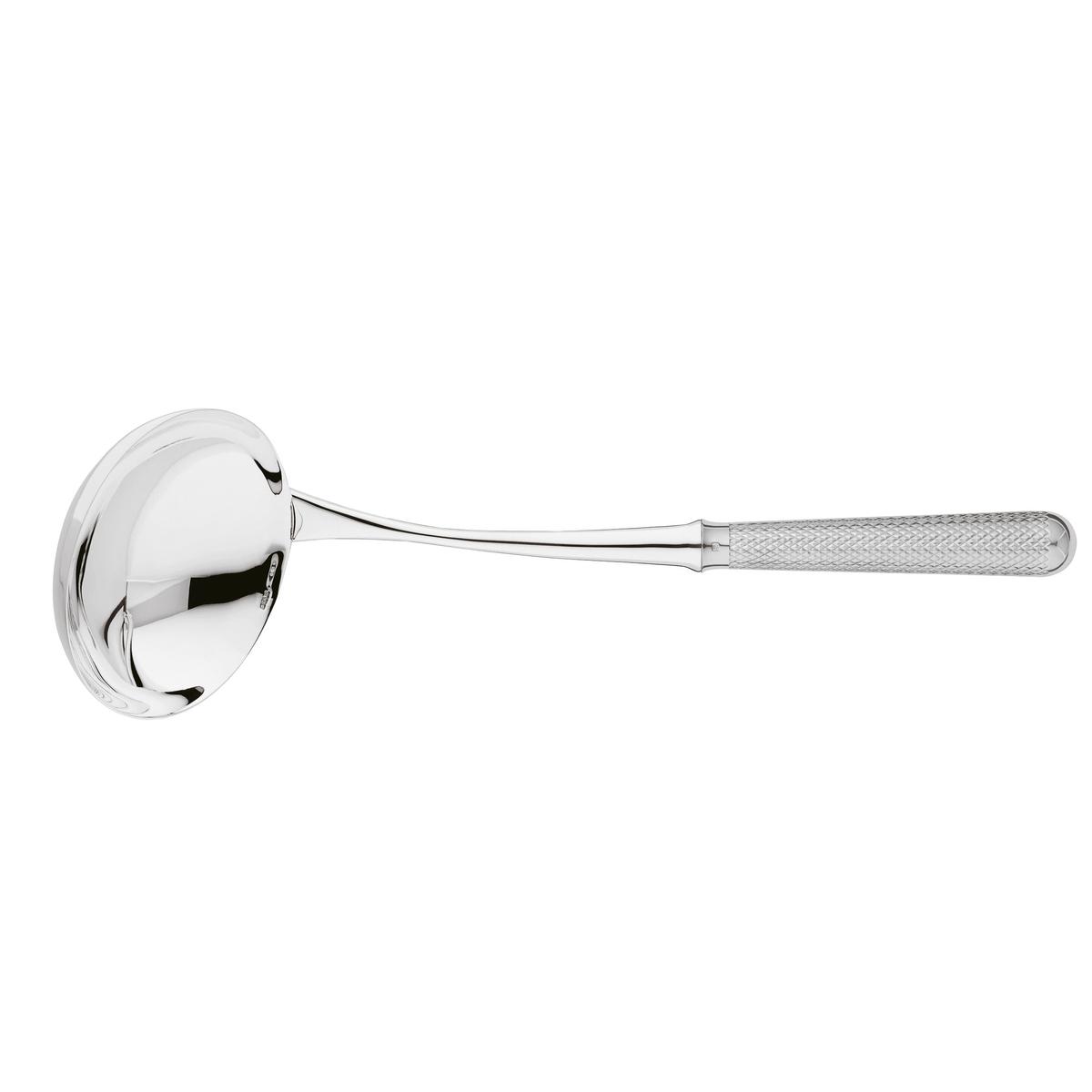 Guilloché, a decorative engraving method dating back to the 16th century, creates delicate, geometric patterns measuring just a tenth of a millimetre in width. Requiring extreme precision and a gesture passed down from generation to generation, this true art form produces refined surface structures of remarkable depth and brilliance. In the "Diamant" design, the technique reveals itself in a finely faceted, diamond-inspired pattern on the handles, giving the collection its name. The textured relief captures and reflects light beautifully, adding a subtle radiance to any table setting.