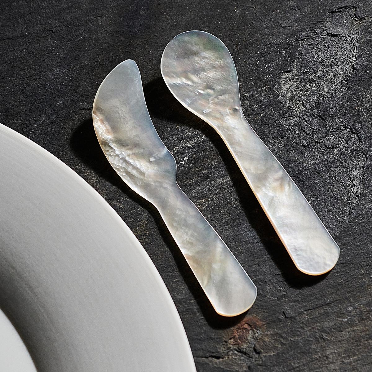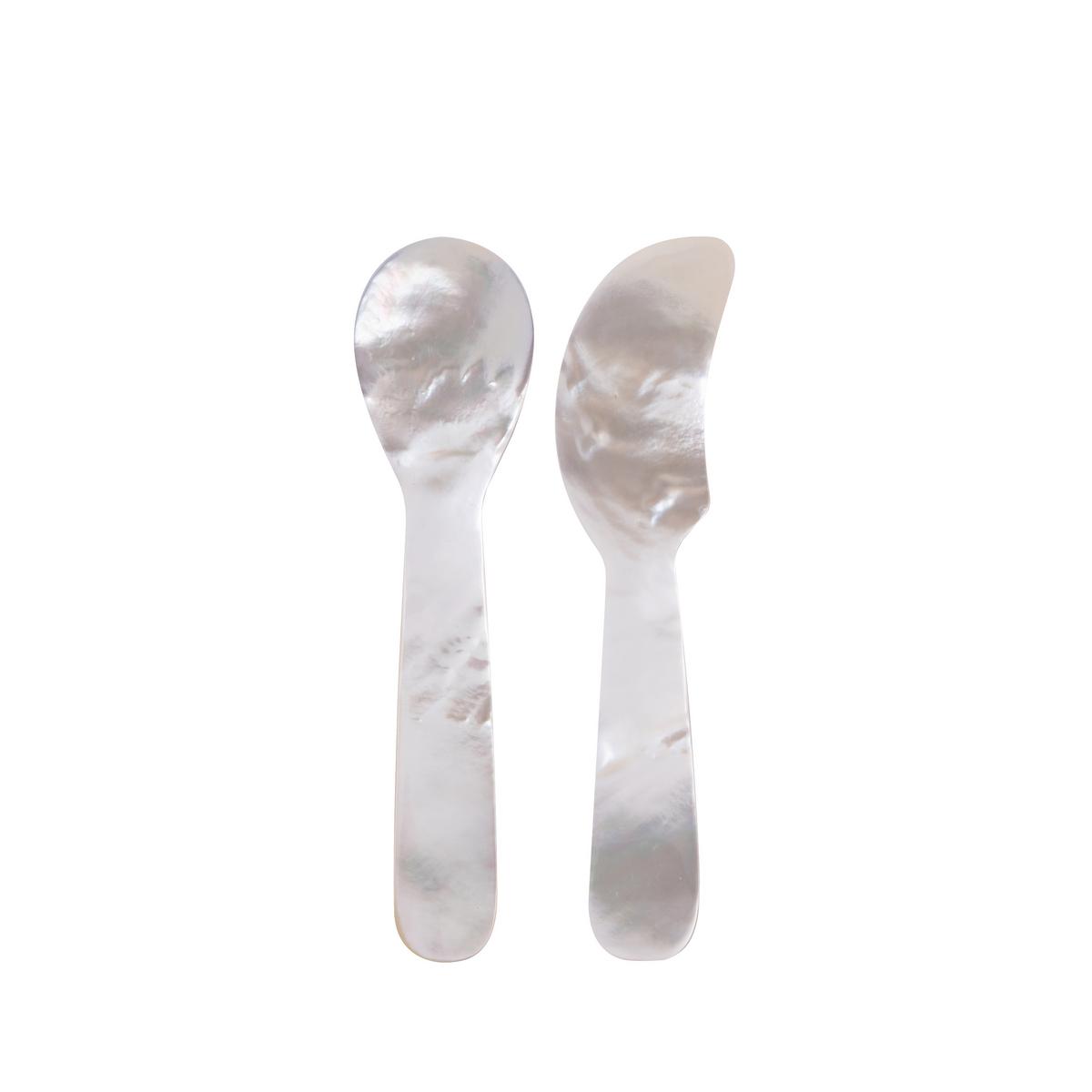- Mother-of-pearl, set with 1 spoon and 1 spreader