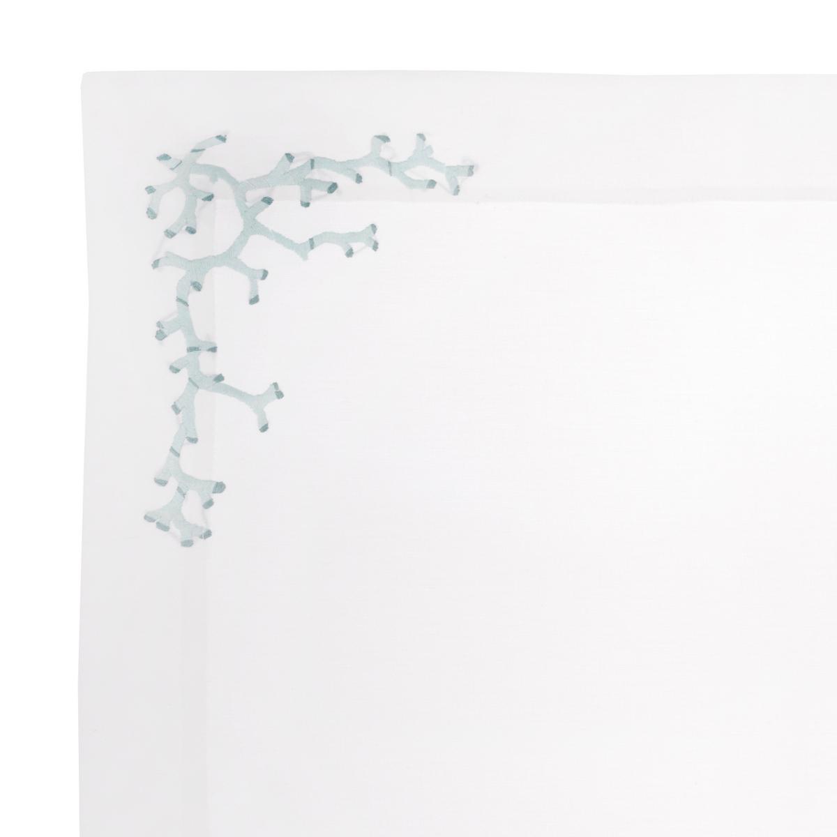 Conjure up the warm southern sun and cool ocean colours in your home. This white cotton table linen by Eri Textiles bears hand-embroidered turquoise coral motifs. The summer ensemble includes napkins, place mats and runners.