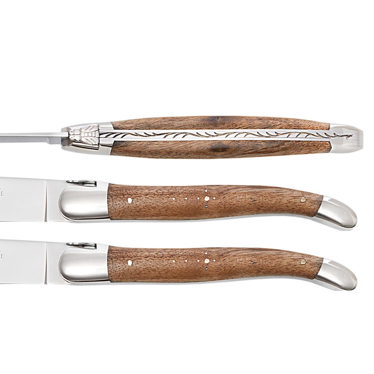 Dinner/Steak knives with walnut wood handles, high-polished finish by Forge de Laguiole