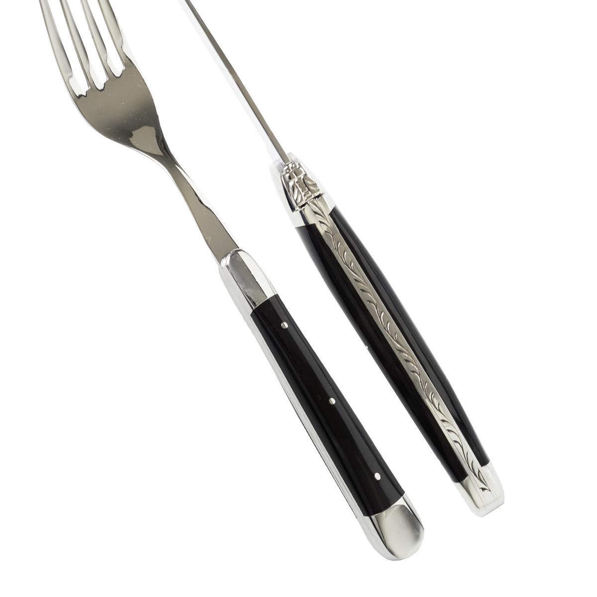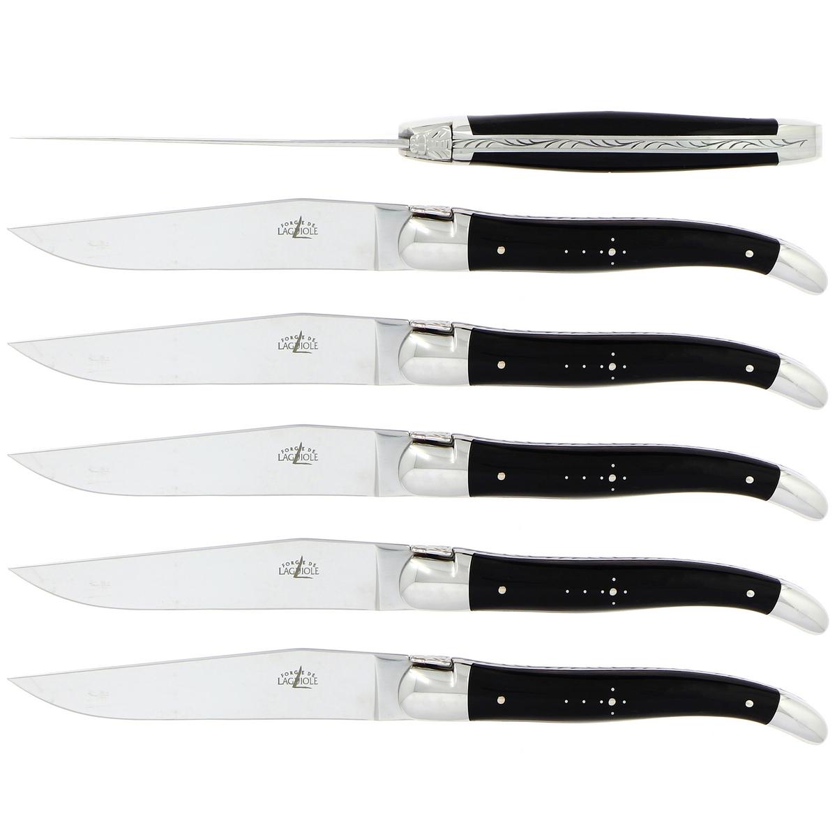 Slim, black horn tip handles merging into gleaming stainless steel. The "Horn" cutlery by Forge de Laguiole, the French maestros in the art of making cutlery, are elegant and rich in contrast.