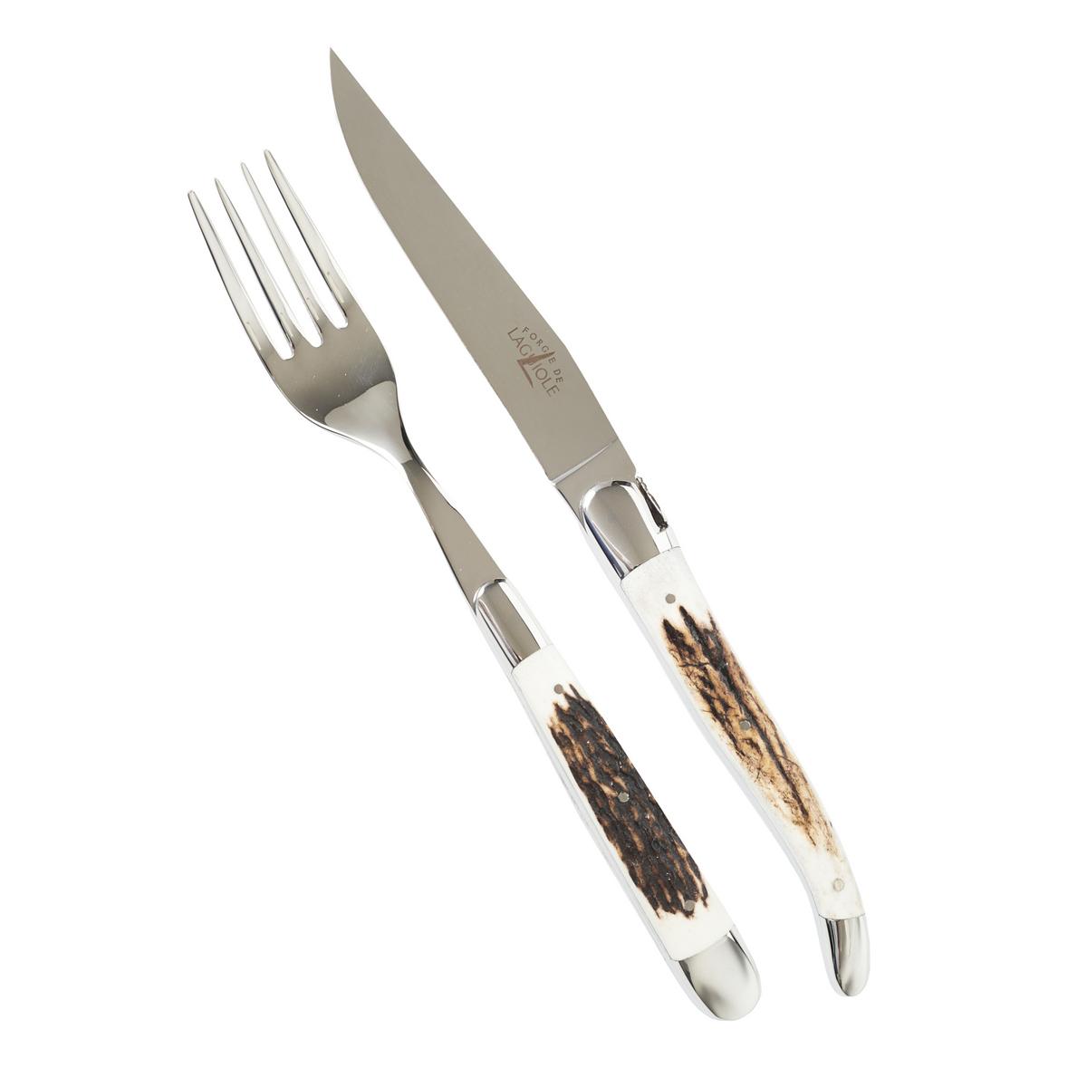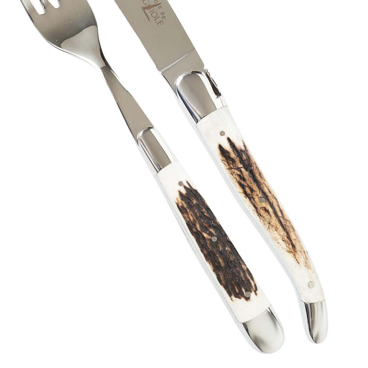 If you are an admirer of exclusive cutlery in country-house style, then this "Stag Horn" cutlery from Forge de Laguiole is just right for you. The knives and forks have original handles made of stag horn, and there is an attractive decorative bee and engraving on the back of each knife.