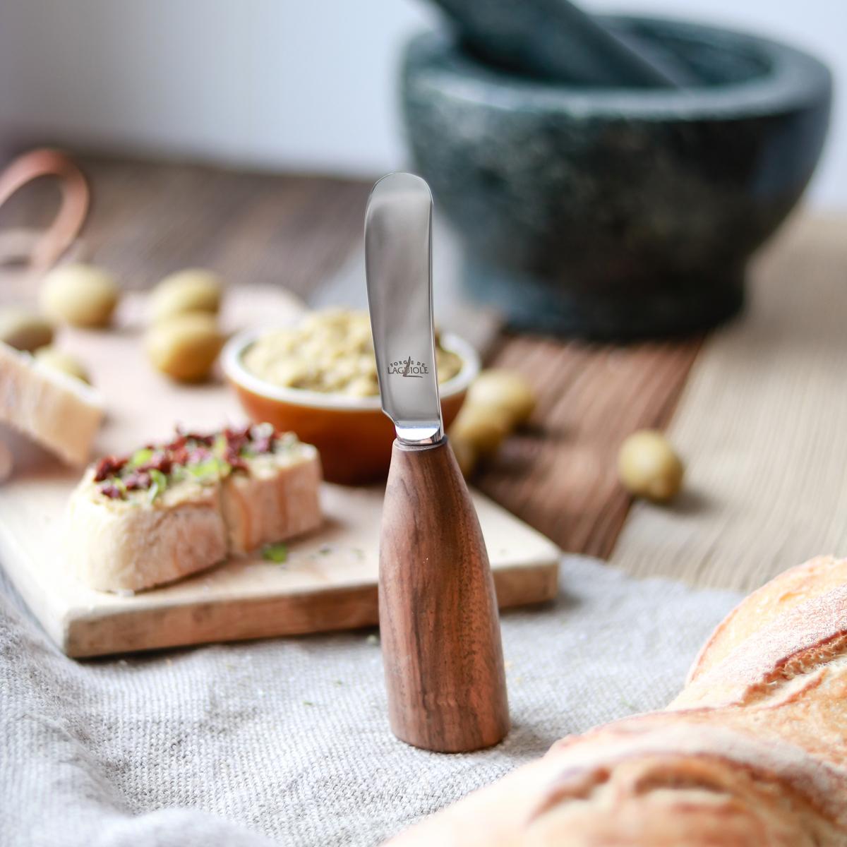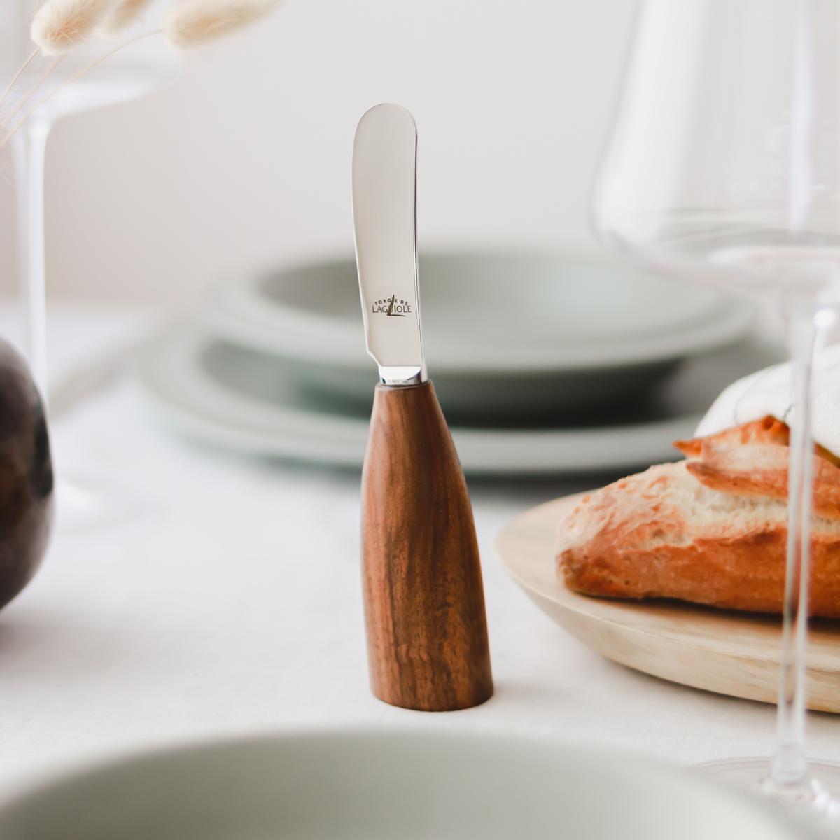 Forge de Laguiole has reinterpreted the "Lou Buré" butter knife, an iconic design by the cutler Stéphane Rambaud. The walnut butter knife is not only beautiful but also practical since, unlike conventional knives it can be placed vertically on the table.