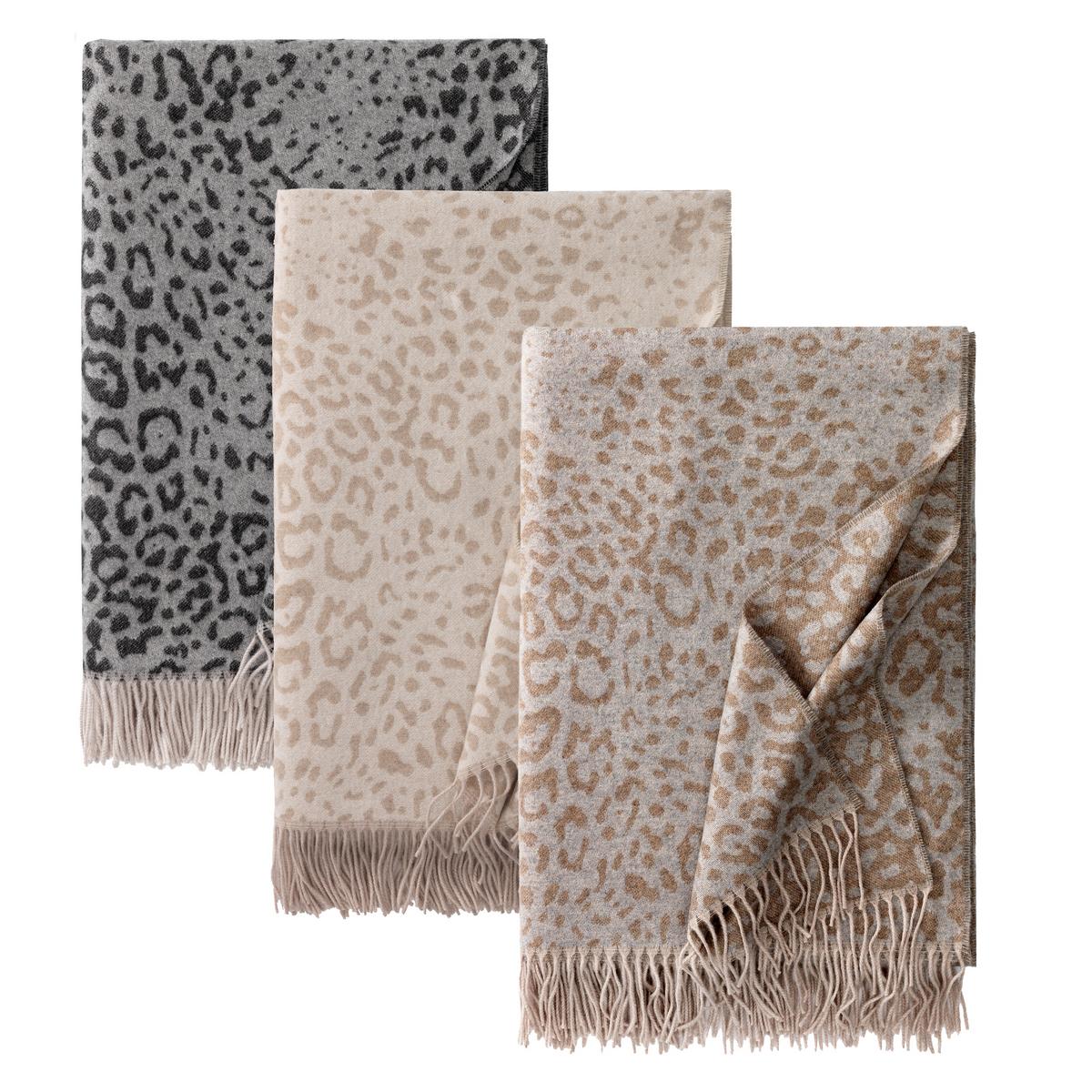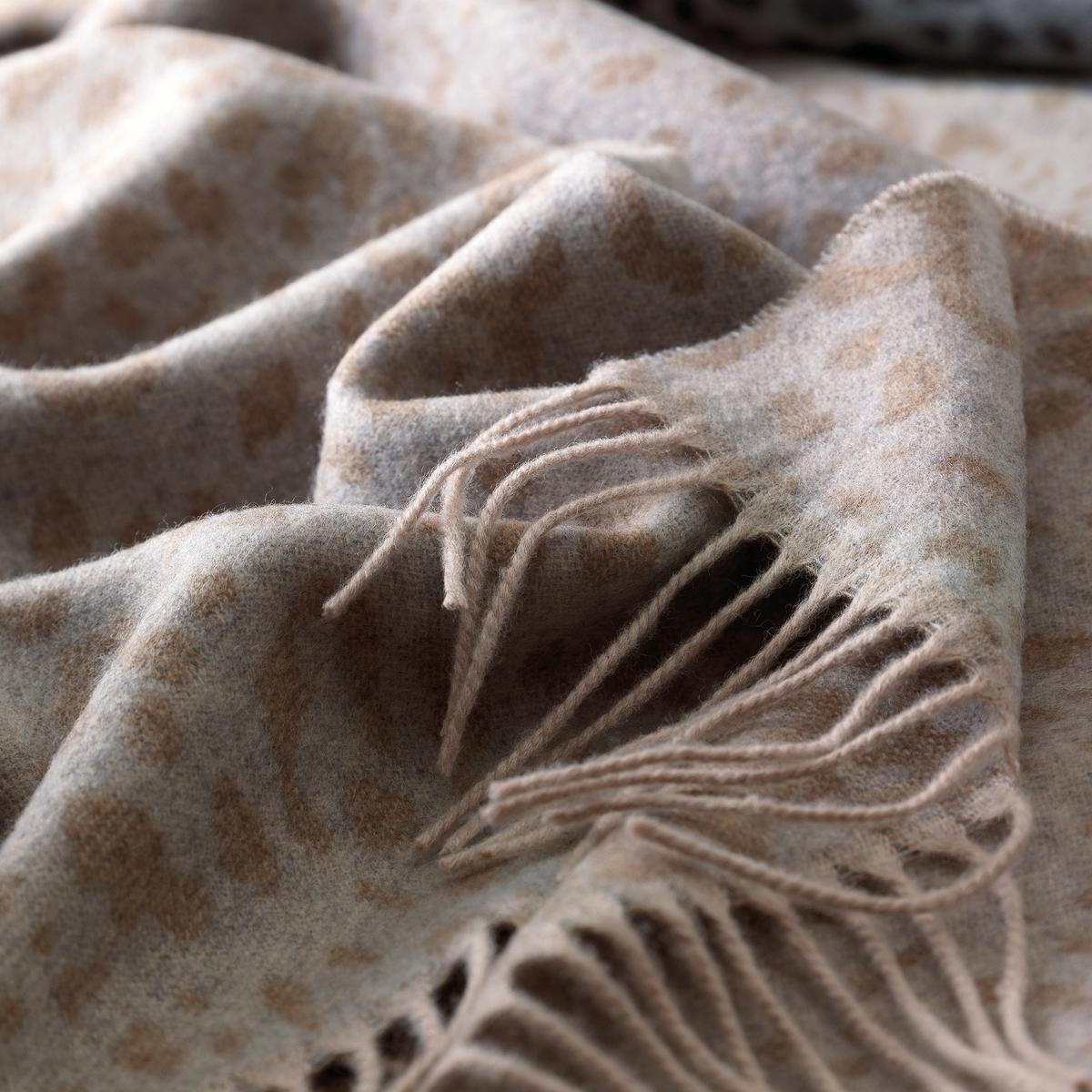 Feline elegance and warmth. The "Sahara" blankets by Franz Barth combine the best of the traditional and the contemporary. They are made 100% in Bavaria from 60% cashmere and 40% pure new wool. The high cashmere content makes these cosy double-face throws incomparably soft and cuddly. Shimmering in elegant tone-on-tone hues, the classic leopard pattern enriches your spaces with natural comfort.