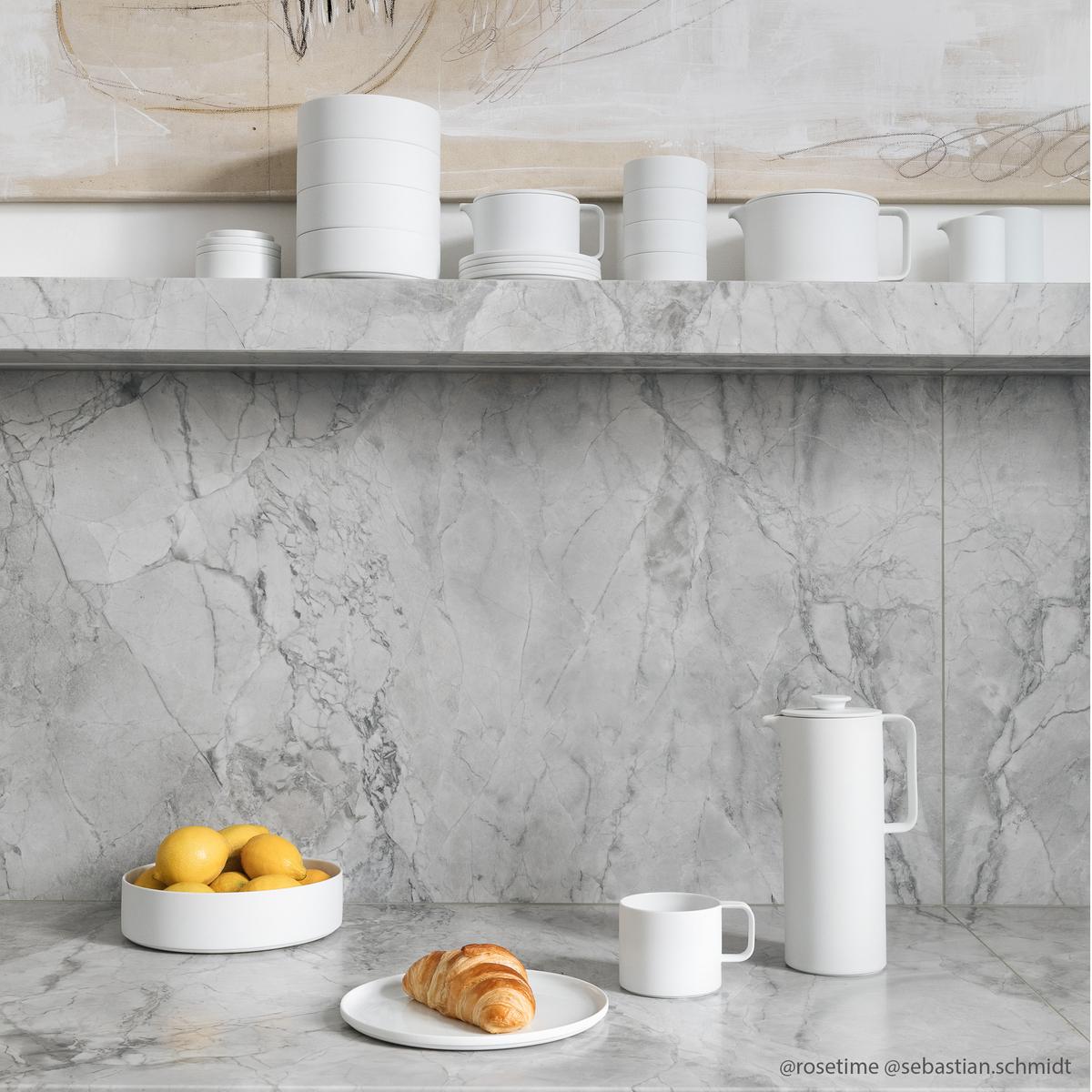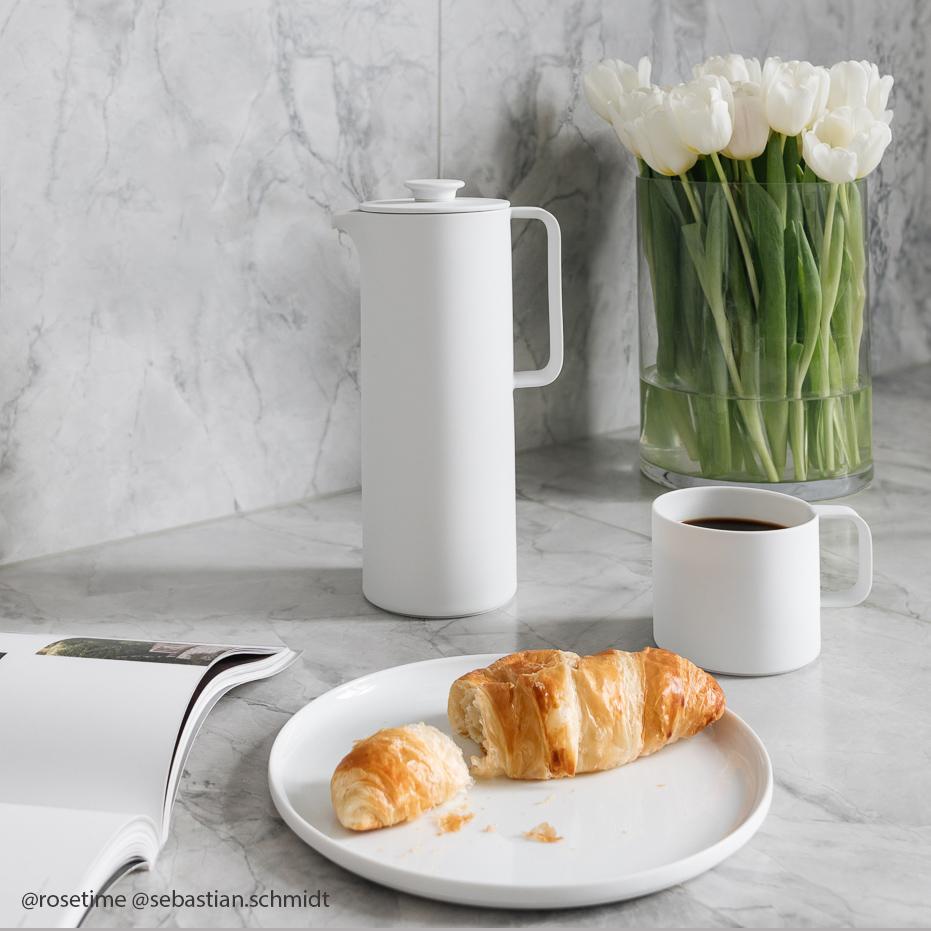 Remarkable novelties in the collection are the French Press coffee maker and the double-walled thermo mug. Both are made entirely of porcelain. The perfectly straight inner walls of the French Press and the wafer-thin double walls of the thermo mug are masterpieces of craftsmanship that can only be realised through absolute precision. Functional, flexible, timeless – go beyond the standard dining experience.