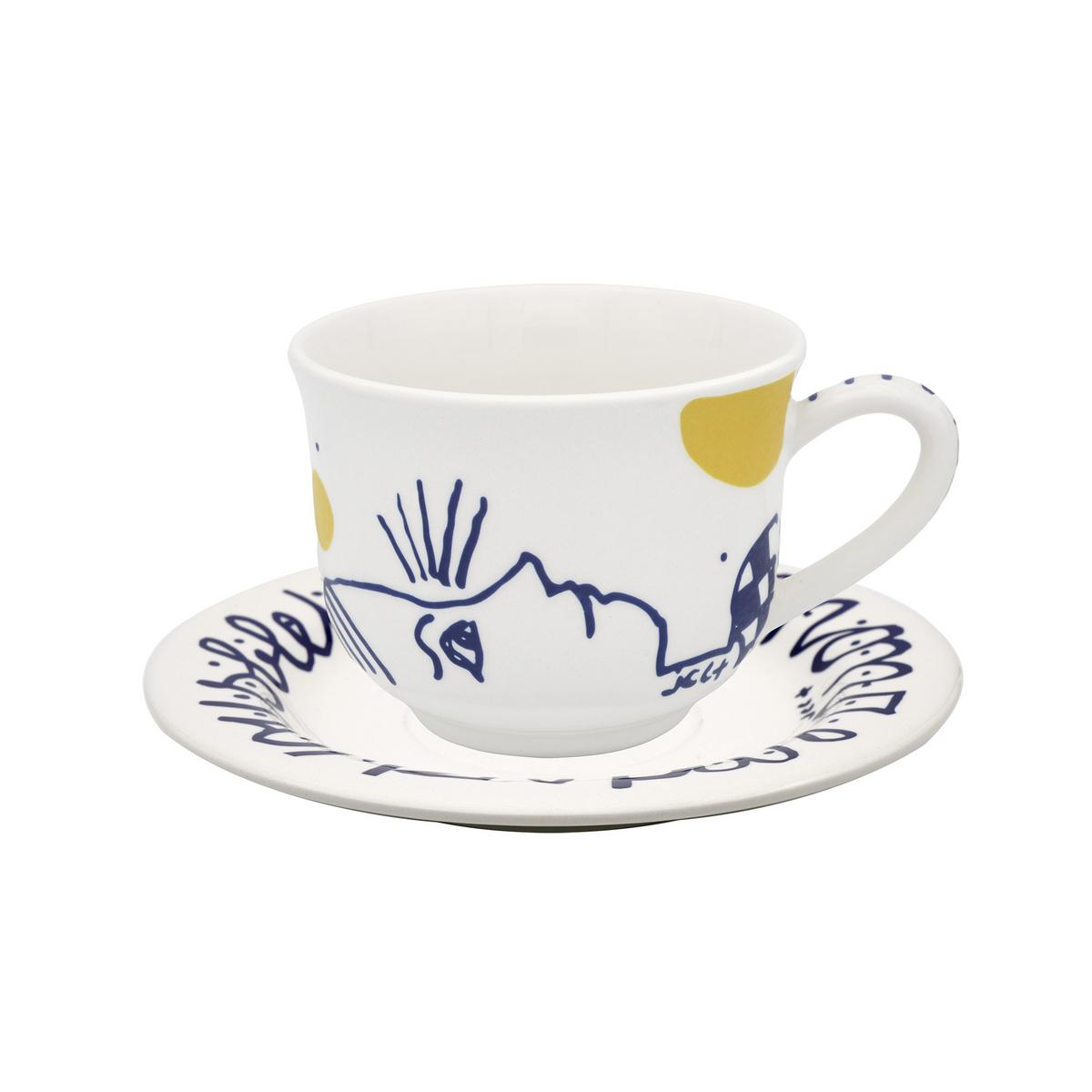 De Castelbajac chose Gien's historic shade of blue as the main colour for his expressionist designs to connect his ideas with the manufactory's long history. Bold colour patches in red, green and yellow add his signature radical colourfulness. Together with the nostalgic nature of faience dinnerware, the décors awaken forgotten memories and feelings from childhood. Flamboyant, radical, emotional – "L'Archipel Sentimental" is a loud yes to life.