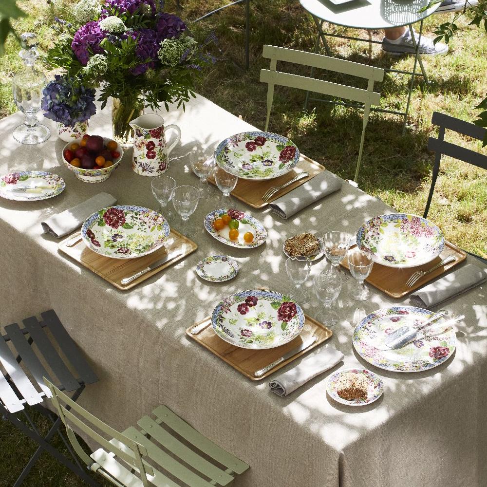The "Millefleurs" dinner service from Gien conjures up the feeling of summer at any time of year. That is because we are always more than happy to be beguiled by the magnificent flowers of an enchanting summer garden. On the porcelain, cornflowers, roses and camellias, elder and geraniums create enchanting silhouettes and set colourful accents.