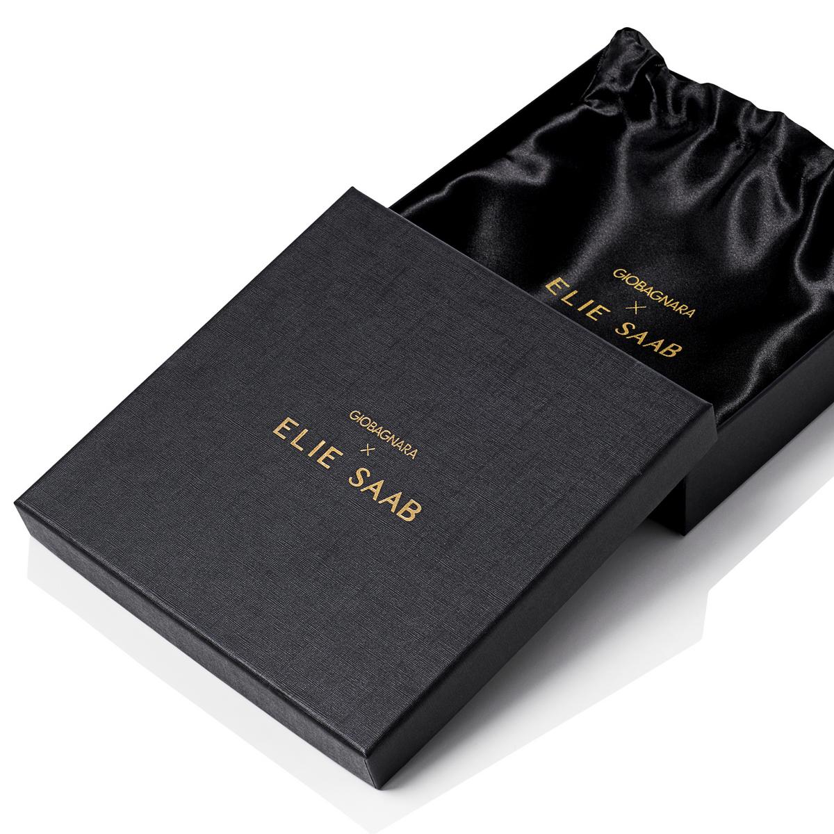 Handcrafted in Italy, the small tray features a rigid metal core that ensures stability, while its flexible sides can be gently folded or opened as needed. Lined with premium calf leather, the interior is embossed with the distinctive Elie Saab monogram in a subtle all-over pattern, adding depth and a signature touch of elegance.